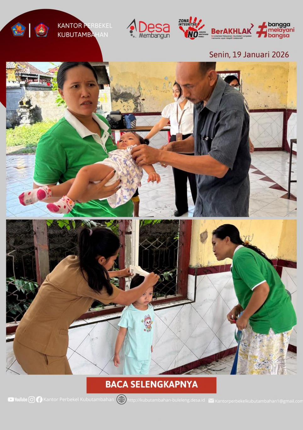 KUBUTAMBAHAN – Dalam upaya meningkatkan derajat kesehatan masyarakat desa secara menyeluruh, Pemerintah Desa Kubutambahan kembali menggelar kegiatan Posyandu Rare Rahayu. Kegiatan ini dilaksanakan pada hari Senin, 19 Januari 2026, bertempat di Banjar Dinas Tegal, Desa Kubutambahan.