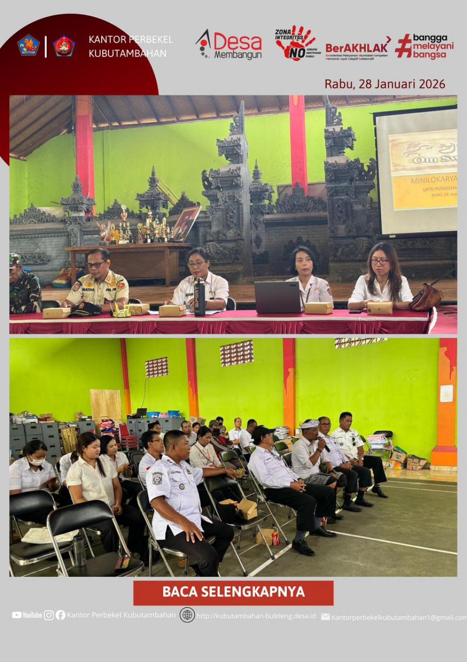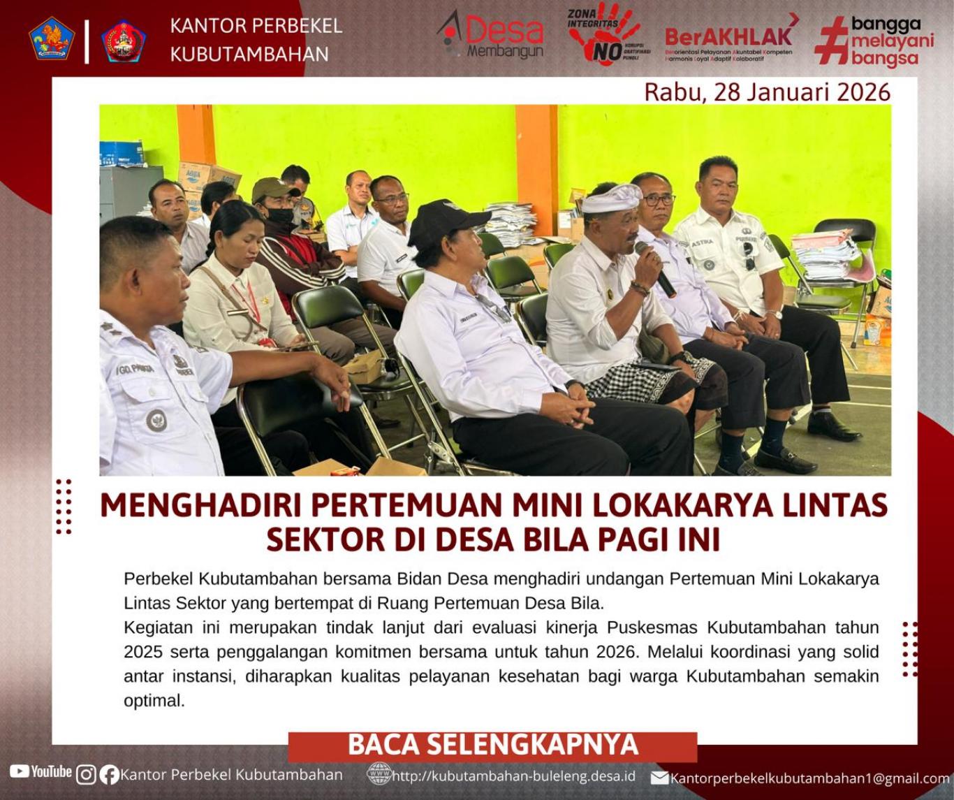 KUBUTAMBAHAN – Menanggapi undangan resmi dari Kepala Puskesmas Kubutambahan melalui surat nomor 400.3.3.6/012/KBTII/1/2026, Perbekel Kubutambahan bersama Bidan Desa menghadiri agenda penting yang berlangsung di Ruang Pertemuan Desa Bila pada Rabu, 28 Januari 2026.