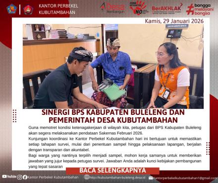KUBUTAMBAHAN – Menjamin validitas data statistik nasional dimulai dari tingkat desa. Pada Kamis (29/1), Badan Pusat Statistik (BPS) Kabupaten Buleleng melakukan kunjungan koordinasi ke Kantor Perbekel Kubutambahan guna membahas pelaksanaan Survei Angkatan Kerja Nasional (Sakernas) tahun 2026.