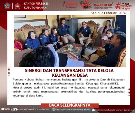 Dengan adanya pengawasan berkala dari APIP (Aparat Pengawasan Intern Pemerintah) ini, diharapkan Desa Kubutambahan dapat terus mempertahankan standar integritas tinggi dalam mengelola dana publik, sekaligus meminimalisir risiko administratif di masa mendatang.