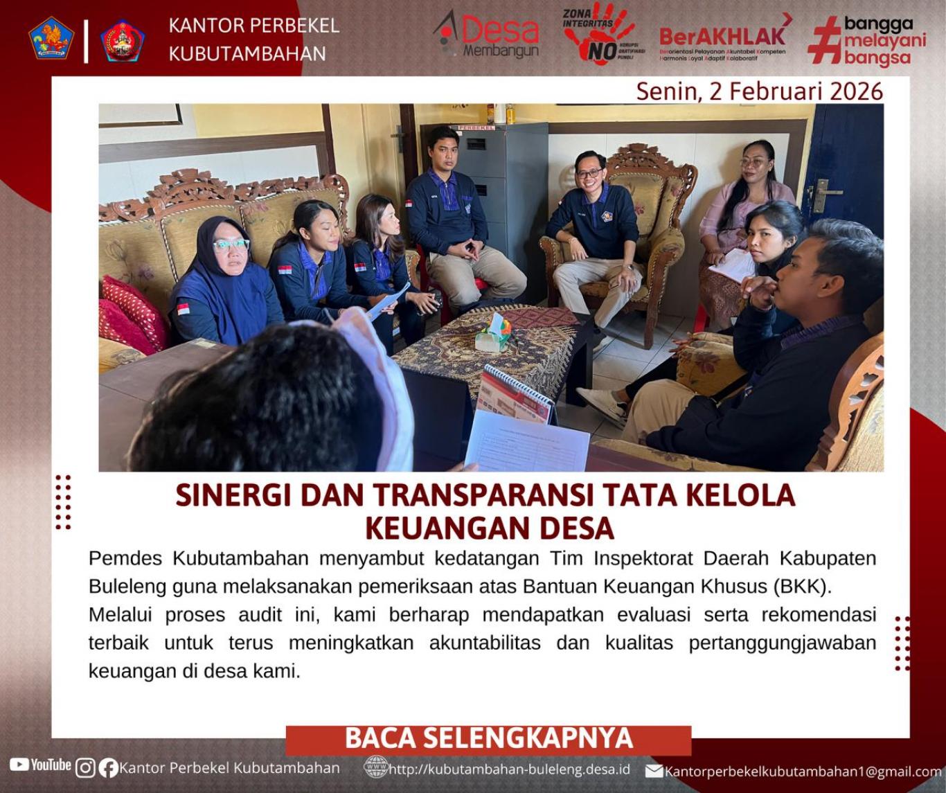 - WUJUDKAN TRANSPARANSI, INSPEKTORAT KABUPATEN BULELENG LAKSANAKAN ENTRY BRIEFING DI DESA KUBUTAMBAHAN