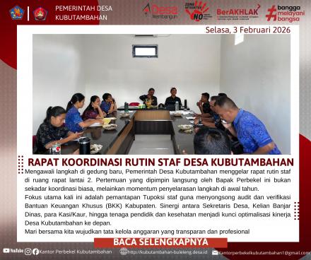 - Optimalisasi Kinerja dan Penataan Anggaran: Rapat Rutin Staf Desa Kubutambahan di Gedung Baru