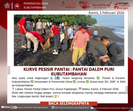 KUBUTAMBAHAN – Suasana Pantai Dalam Puri, Desa Kubutambahan, tampak berbeda pada Kamis pagi, 5 Februari 2026. Ratusan orang dari berbagai elemen masyarakat berkumpul untuk melaksanakan aksi gotong royong atau "Kurve" pesisir pantai. Kegiatan besar ini dipimpin langsung oleh Kapolsek Kubutambahan, yang turun ke lapangan untuk menggerakkan sinergi lintas instansi dan pelajar.