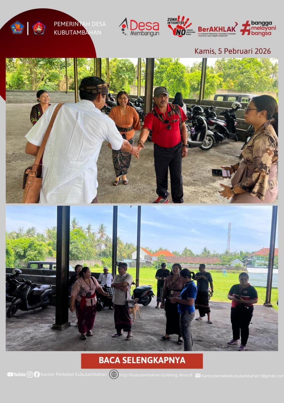 KUBUTAMBAHAN – Pada hari ini, Kamis (5/2/2026), Pemerintah Desa Kubutambahan menerima kunjungan koordinasi penting dari Tim Dinas Pemberdayaan Masyarakat dan Desa (PMD) Provinsi Bali serta Tim PMD Kabupaten Buleleng. Kunjungan lapangan ini dilakukan sebagai langkah awal pengecekan kesiapan lokasi di Desa Kubutambahan.