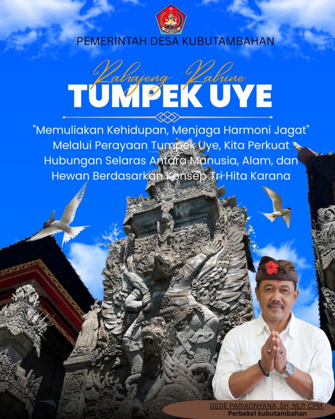 KUBUTAMBAHAN – Sejalan dengan semangat menjaga kelestarian alam dan lingkungan, Pemerintah Desa Kubutambahan menyampaikan ucapan selamat merayakan Rahina Tumpek Uye (Tumpek Kandang) yang jatuh pada hari ini.