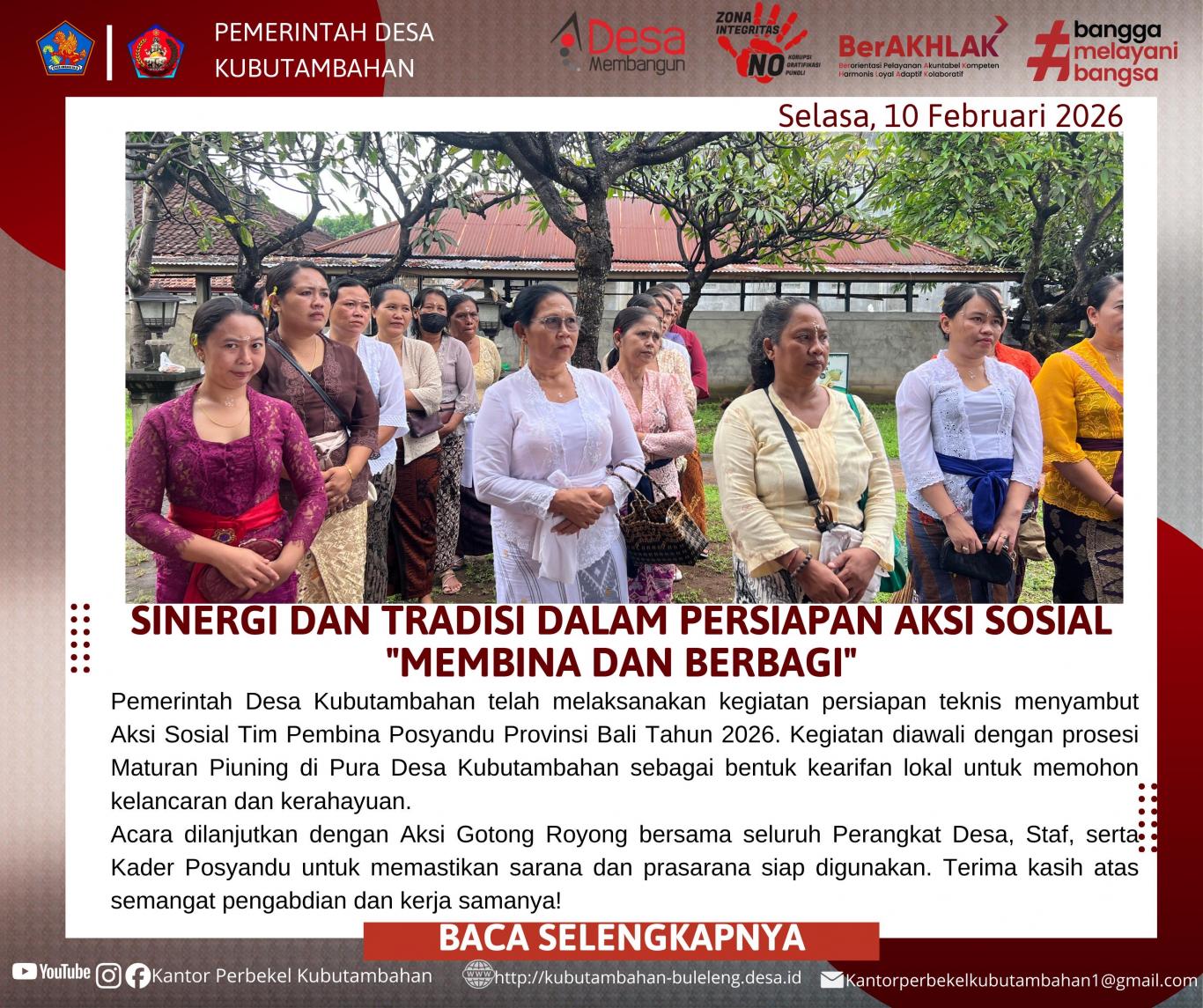 KUBUTAMBAHAN – Menjelang kunjungan penting dari Tim Pembina Posyandu Provinsi Bali, Pemerintah Desa Kubutambahan menunjukkan dedikasi penuh melalui persiapan teknis besar-besaran. Pada Selasa (10/2/2026), suasana di Wantilan Pura Desa Kubutambahan tampak sibuk dan penuh semangat gotong royong.