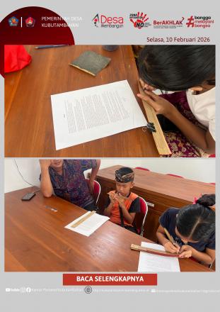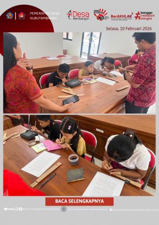 KUBUTAMBAHAN – Suara gesekan pengrupak di atas daun lontar memenuhi Ruang Belajar Desa Kubutambahanpada Selasa (10/2/2026). Bertempat di lantai 2 kantor desa, Pemerintah Desa Kubutambahan menggelar pembinaan khusus Nyurat Lontar yang diikuti dengan penuh antusias oleh siswa-siswi Sekolah Dasar (SD) dari seluruh wilayah Desa Kubutambahan.
