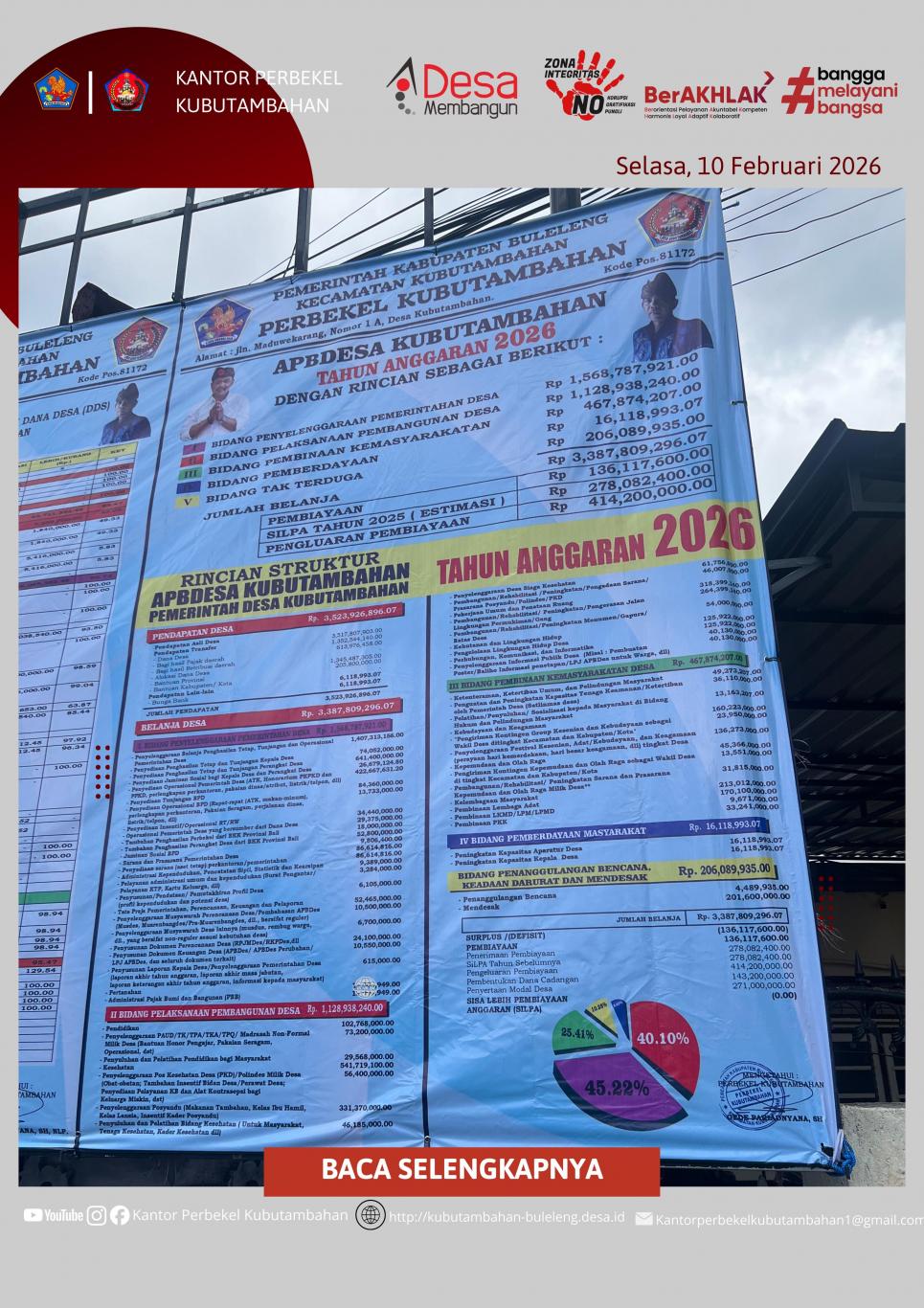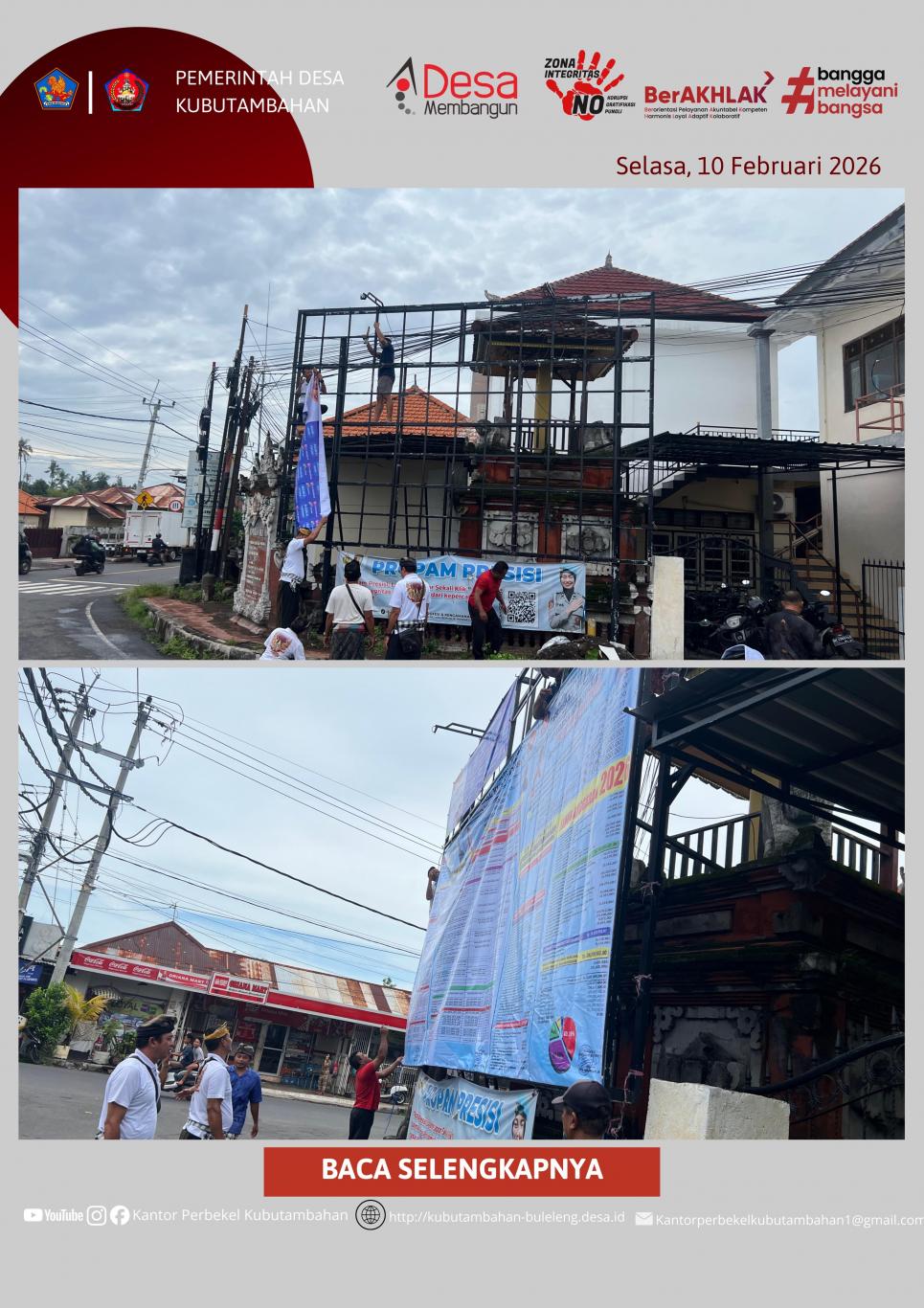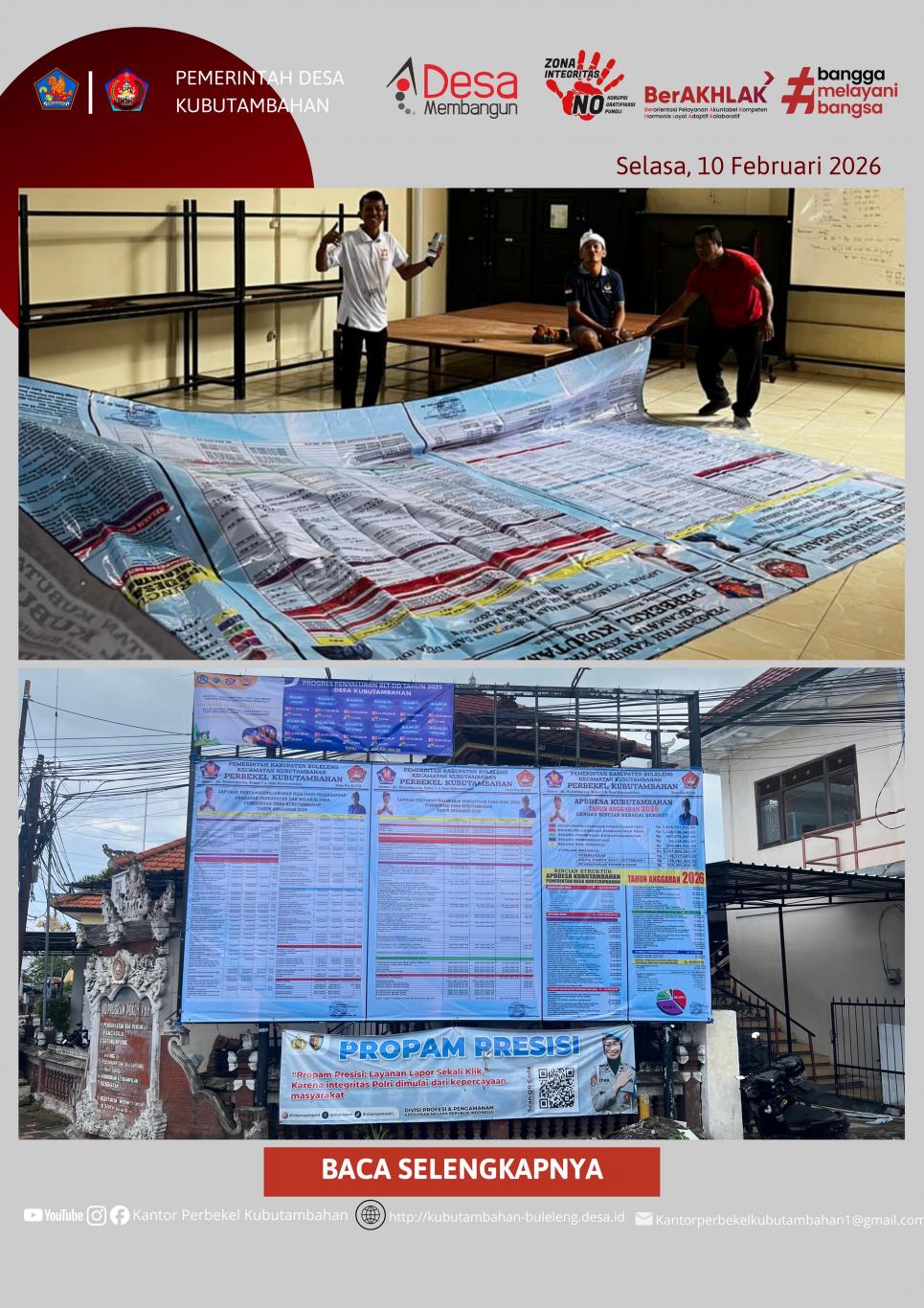 KUBUTAMBAHAN – Sebagai wujud keterbukaan informasi publik dan pertanggungjawaban kepada masyarakat, Pemerintah Desa (Pemdes) Kubutambahan melaksanakan pemasangan baliho transparansi anggaran pada hari ini, Selasa, 10 Februari 2026.