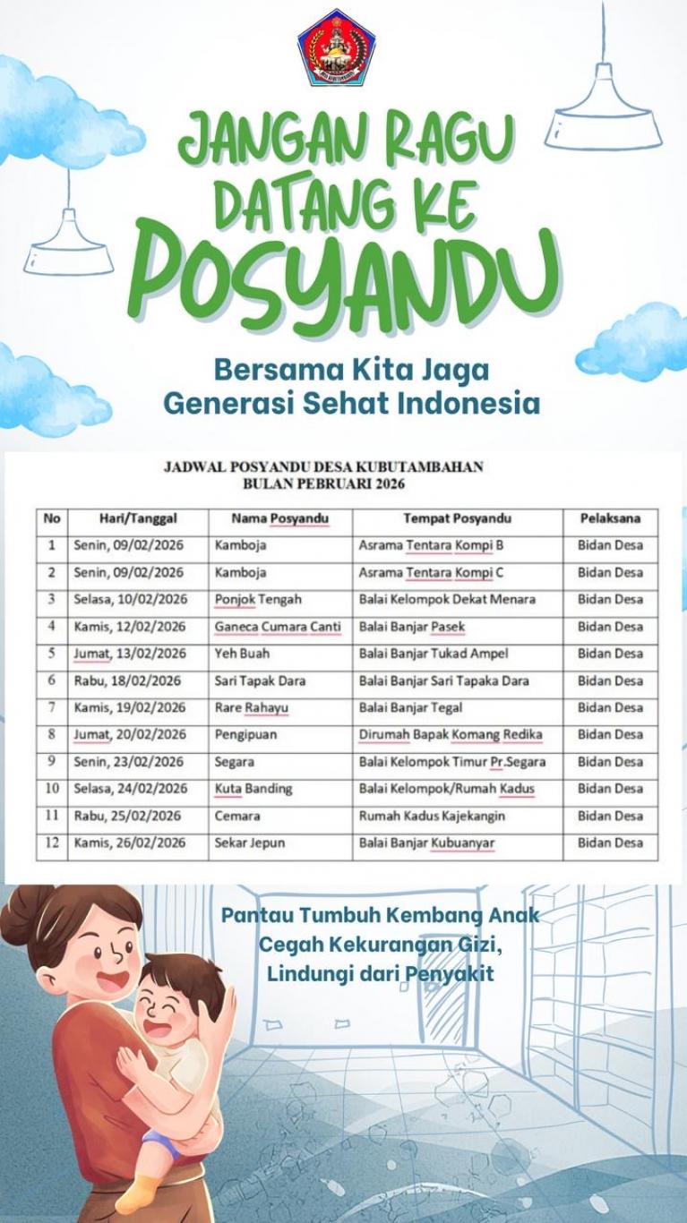- JADWAL POSYANDU DESA KUBUTAMBAHAN BULAN PEBRUARI TAHUN 2026