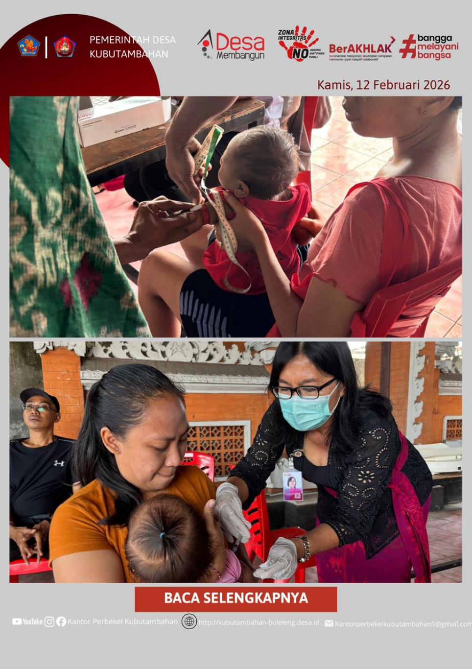 KUBUTAMBAHAN – Pelayanan kesehatan dasar berbasis masyarakat kembali dilaksanakan secara optimal di wilayah Desa Kubutambahan. Pada hari ini, Kamis, 12 Februari 2026, telah berlangsung kegiatan POSYANDU GANES CUMARA CANTHI yang bertempat di Banjar Dinas Pasek.