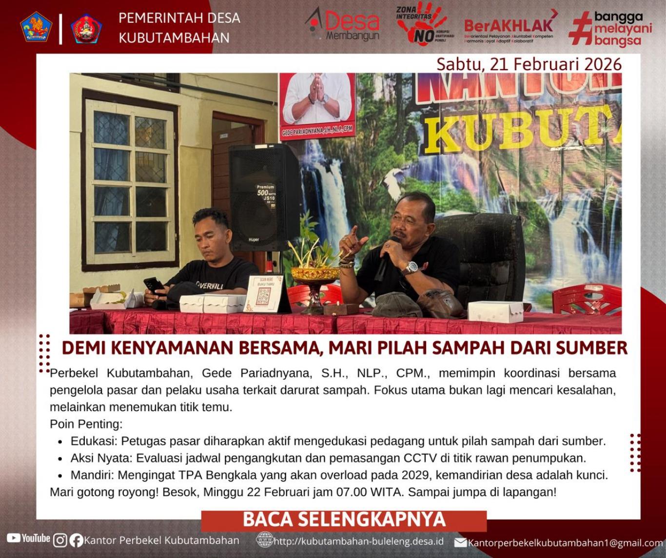 - MENUJU DESA MANDIRI SAMPAH: PERBEKEL KUBUTAMBAHAN GELAR KOORDINASI STRATEGIS PENATAAN SAMPAH PASAR