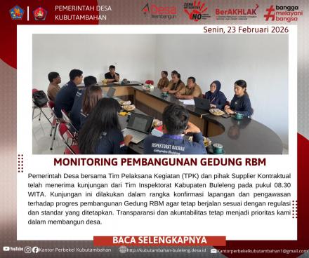Rangkaian kegiatan ini merupakan bukti nyata komitmen Perangkat Desa Kubutambahan untuk terus disiplin dalam administrasi dan pembangunan fisik. Dengan pengawasan ketat dari Inspektorat, diharapkan pembangunan Gedung RBM dapat selesai tepat waktu dan memberikan manfaat maksimal bagi masyarakat.