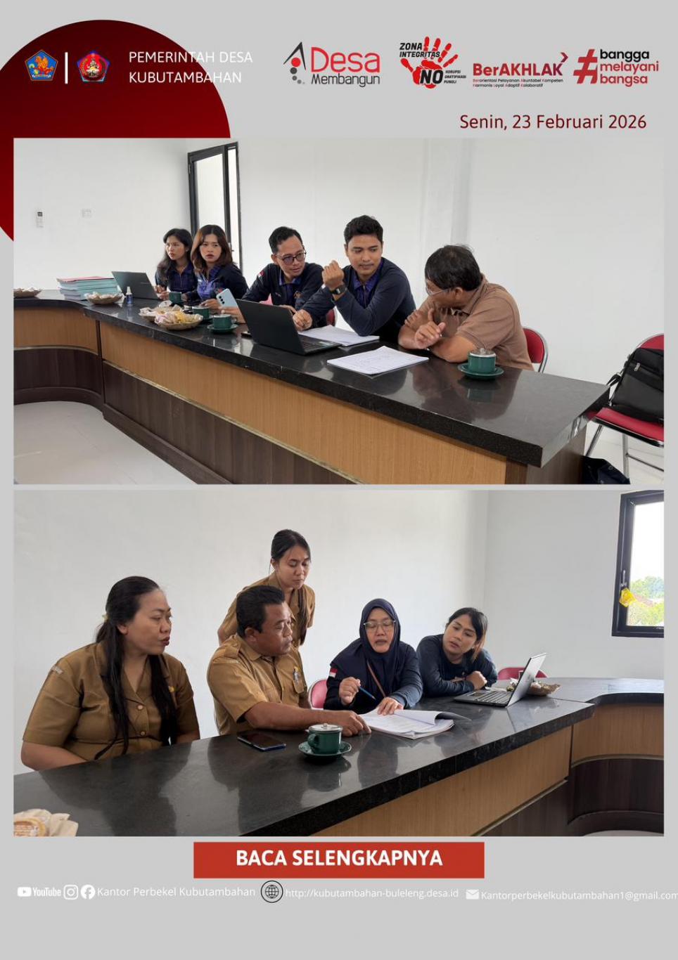 Di saat yang bersamaan, pada pukul 08.30 WITA, jajaran Perangkat Desa Kubutambahan bersama Tim Pelaksana Kegiatan (TPK) dan pihak Supplier Kontraktual menerima kunjungan dari Tim Inspektorat Kabupaten Buleleng di kantor desa.