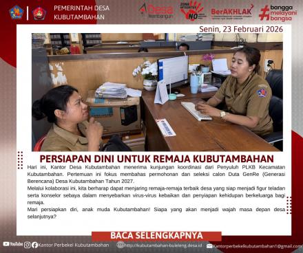 KUBUTAMBAHAN – Pemerintah Desa Kubutambahan mulai mengambil langkah proaktif dalam membina generasi muda. Pada Senin, 23 Februari 2026, Kantor Desa Kubutambahan menerima kunjungan koordinasi dari Penyuluh Petugas Lapangan Keluarga Berencana (PLKB) Kecamatan Kubutambahan.