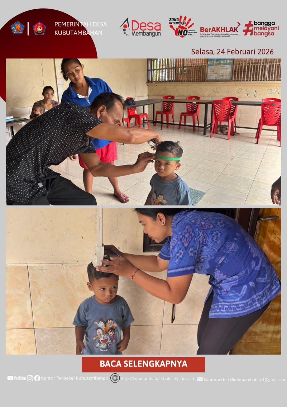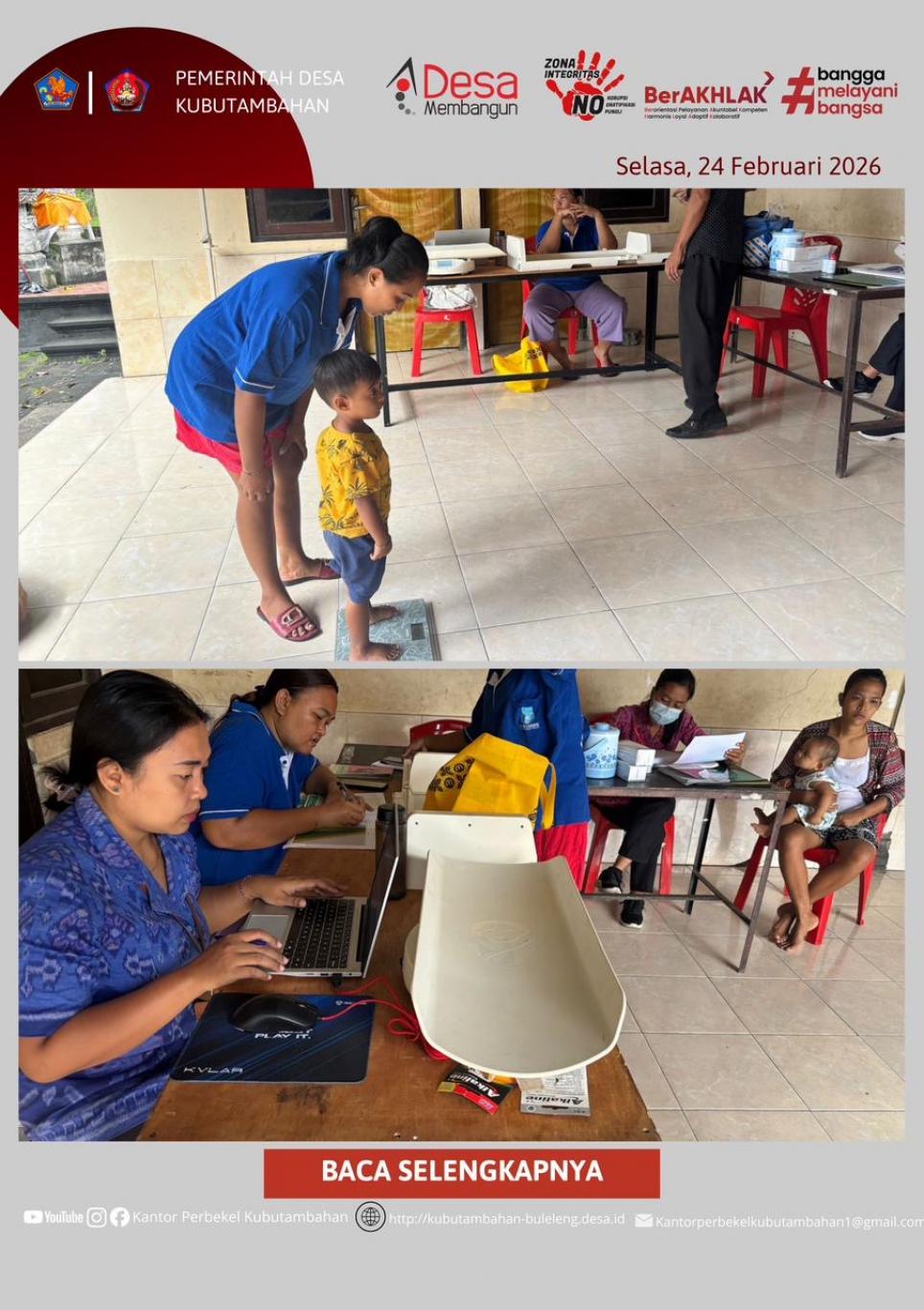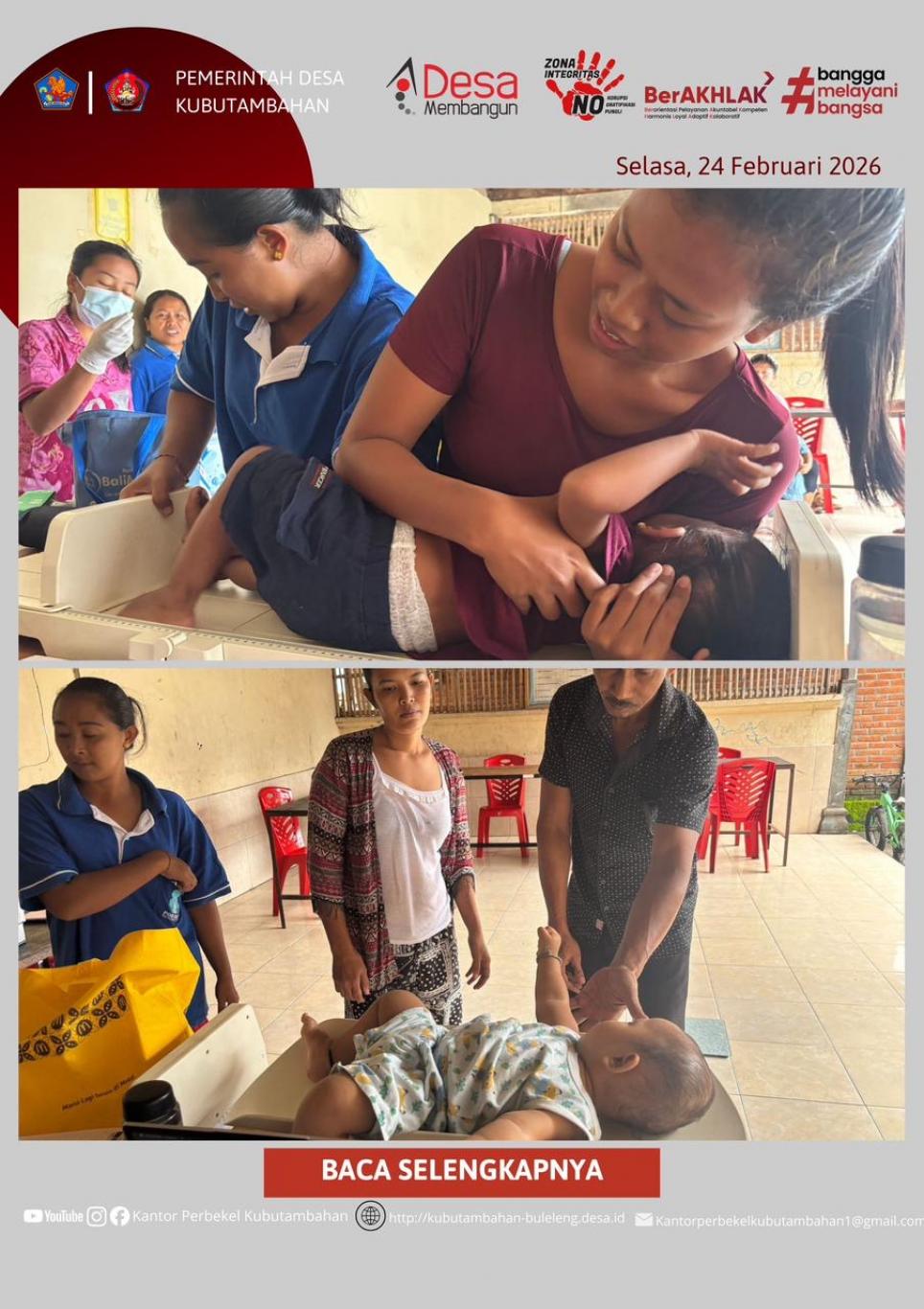 KUBUTAMBAHAN – Pelayanan kesehatan dasar berbasis masyarakat kembali dilaksanakan secara optimal di wilayah Desa Kubutambahan. Pada hari ini Selasa, 24 Pebruari 2026, telah berlangsung kegiatan POSYANDU KUTA BANDING yang bertempat di Banjar Dinas Kuta Banding.