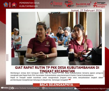 Kegiatan yang berlangsung di Kantor Camat Kubutambahan ini dihadiri langsung oleh Ketua TP PKK Desa Kubutambahan beserta jajaran pengurus. Pertemuan berkala ini menjadi momentum penting untuk membangun sinergi demi kemajuan desa melalui program-program pemberdayaan keluarga.