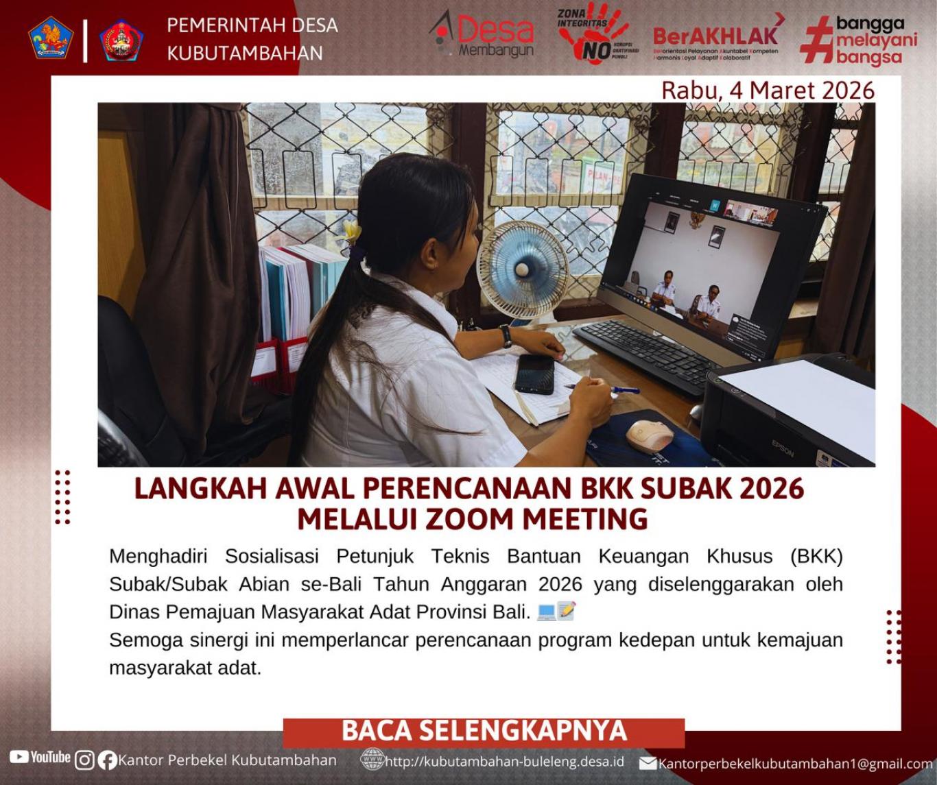 - SINERGI UNTUK MASYARAKAT ADAT: DESA KUBUTAMBAHAN IKUTI SOSIALISASI JUKNIS BKK SUBAK 2026 VIA ZOOM
