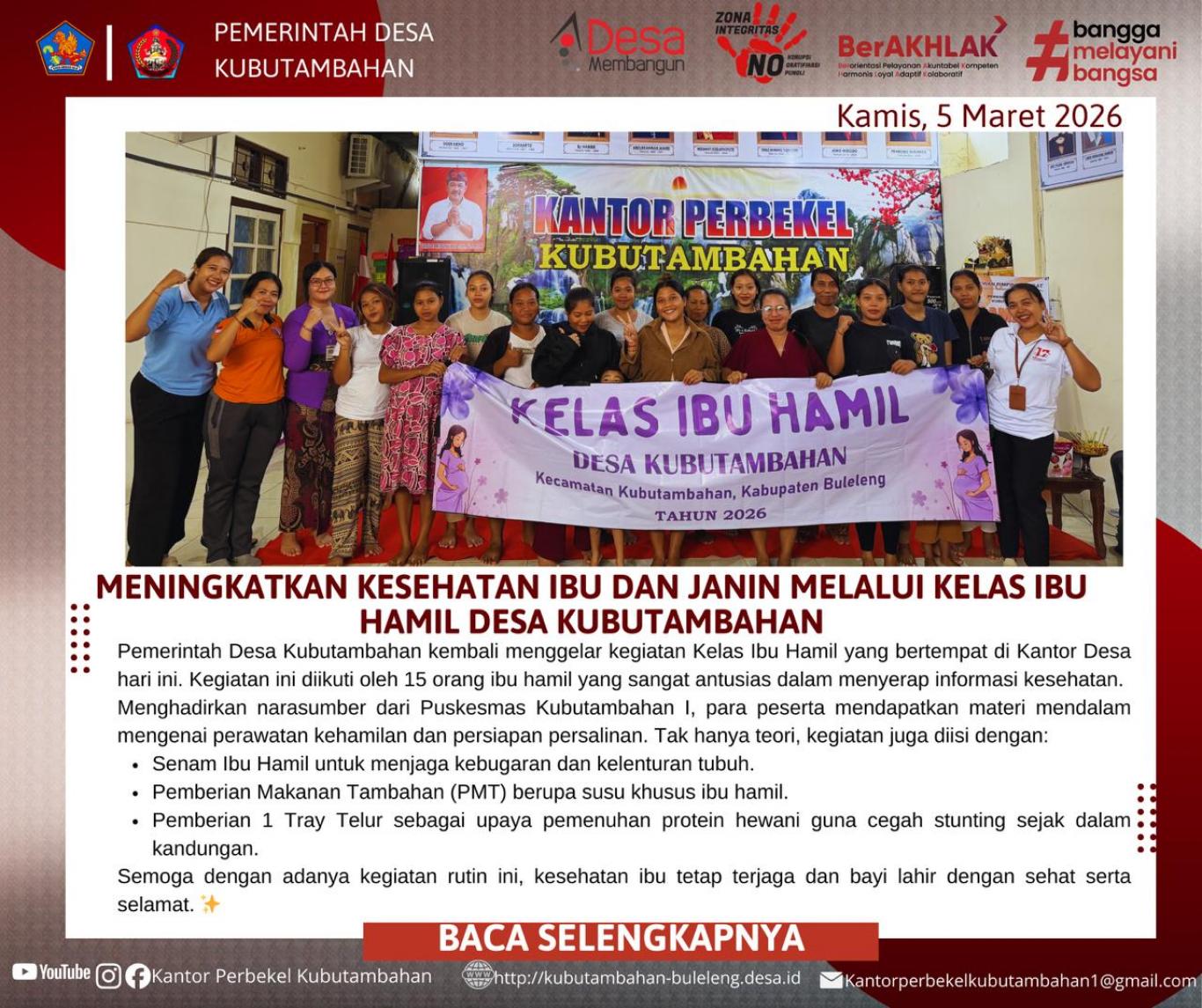 - TINGKATKAN KESEHATAN IBU DAN JANIN, PEMDES KUBUTAMBAHAN GELAR KELAS IBU HAMIL 2026