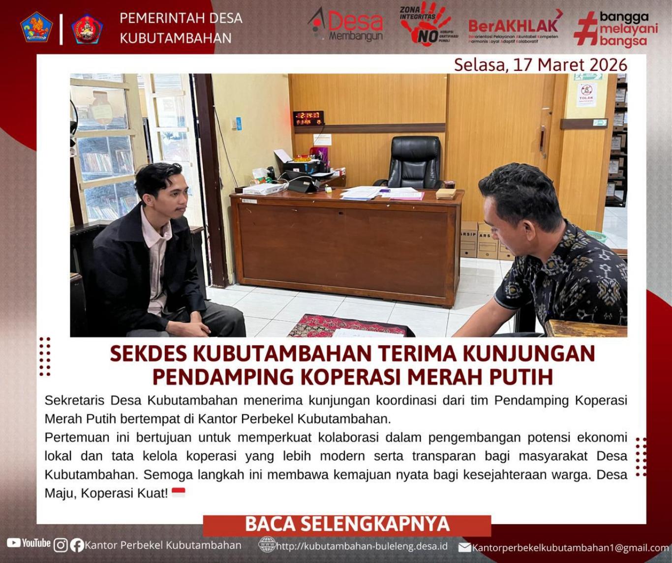- PERKUAT EKONOMI LOKAL, SEKDES KUBUTAMBAHAN TERIMA KUNJUNGAN TIM PENDAMPING KOPERASI MERAH PUTIH