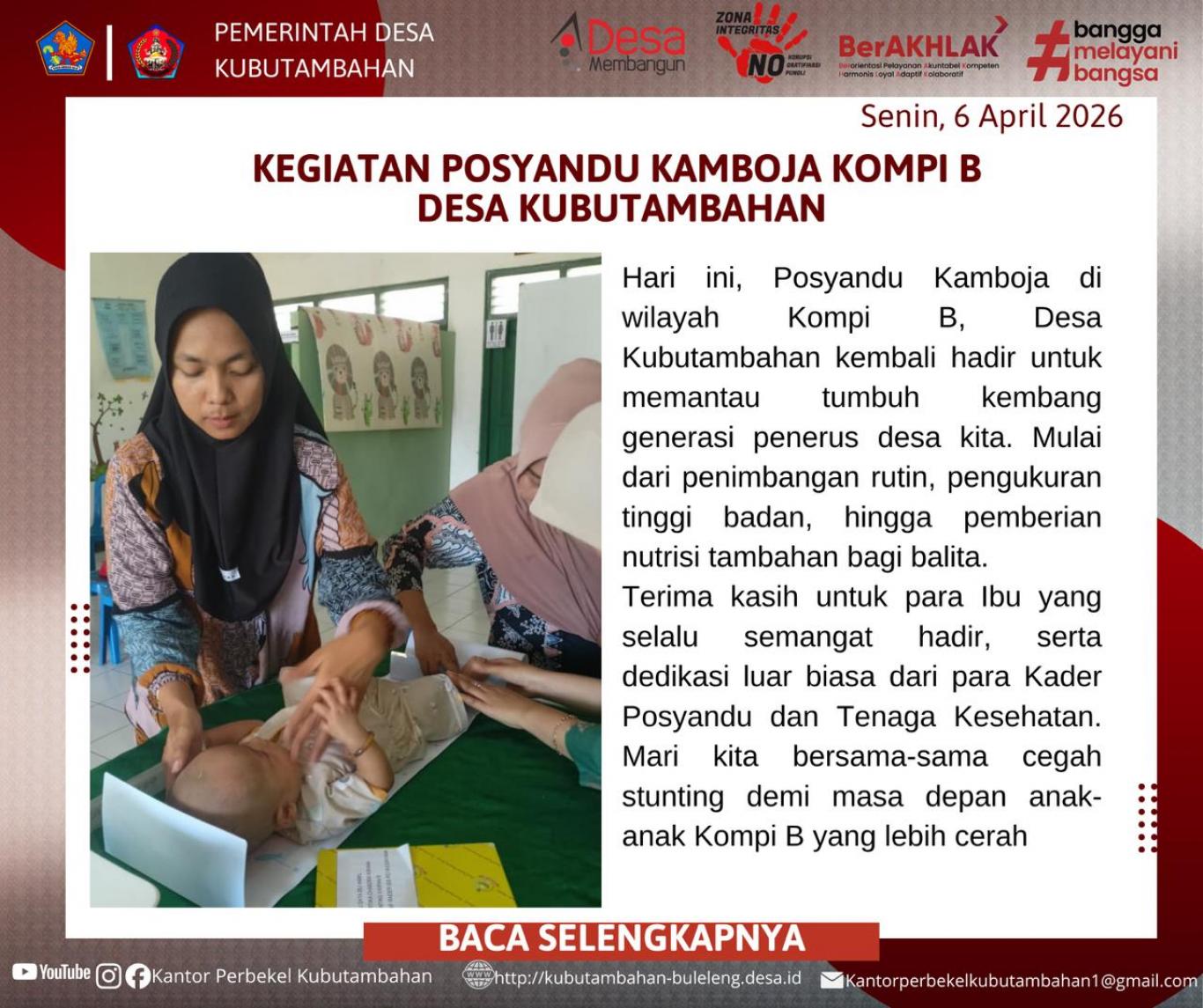 Pemerintah Desa Kubutambahan sangat mengapresiasi dedikasi para kader posyandu serta tenaga kesehatan yang bertugas dengan penuh semangat. Kerja sama yang baik antara pemerintah desa, instansi terkait, dan kesadaran masyarakat adalah kunci utama dalam menekan angka stunting.