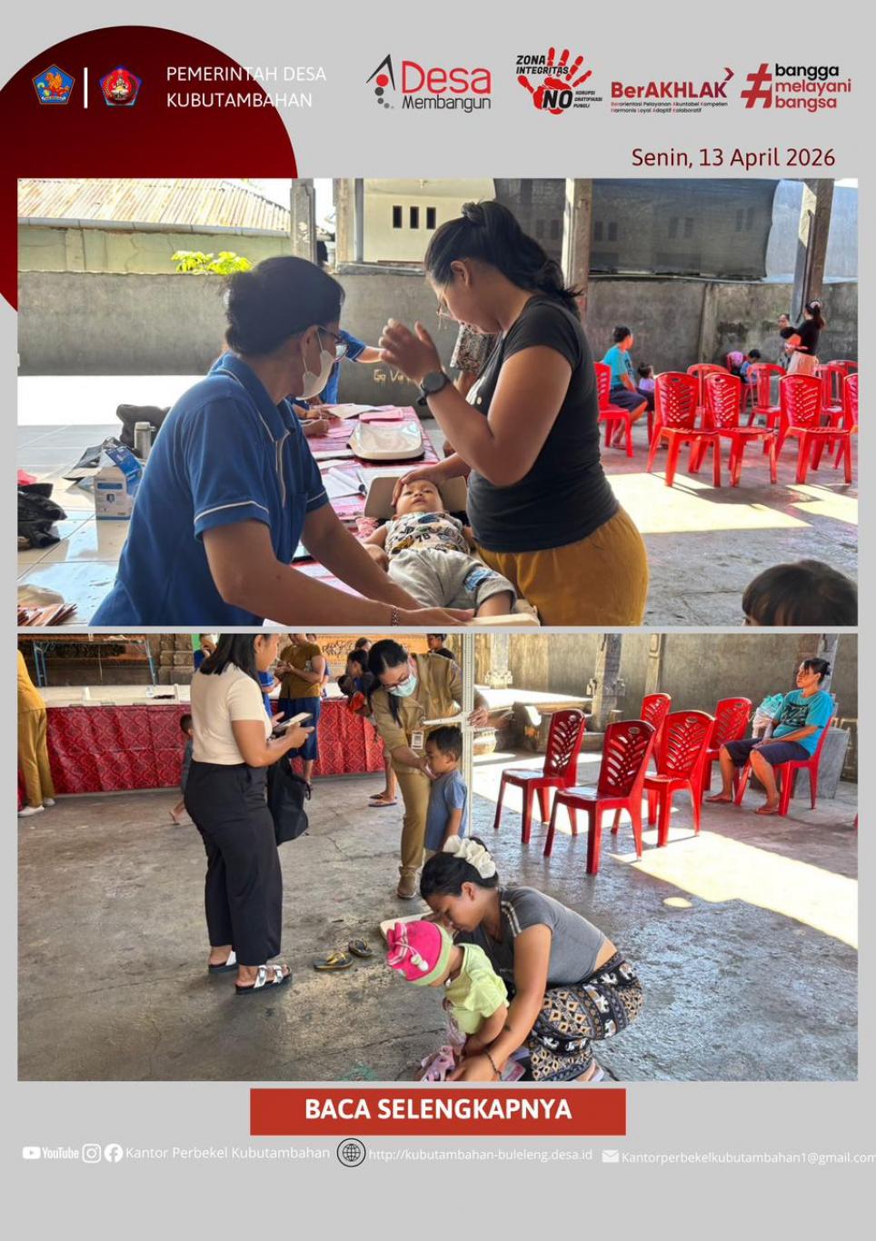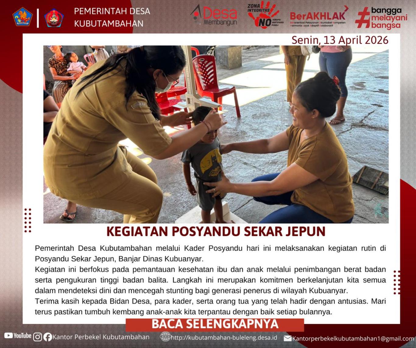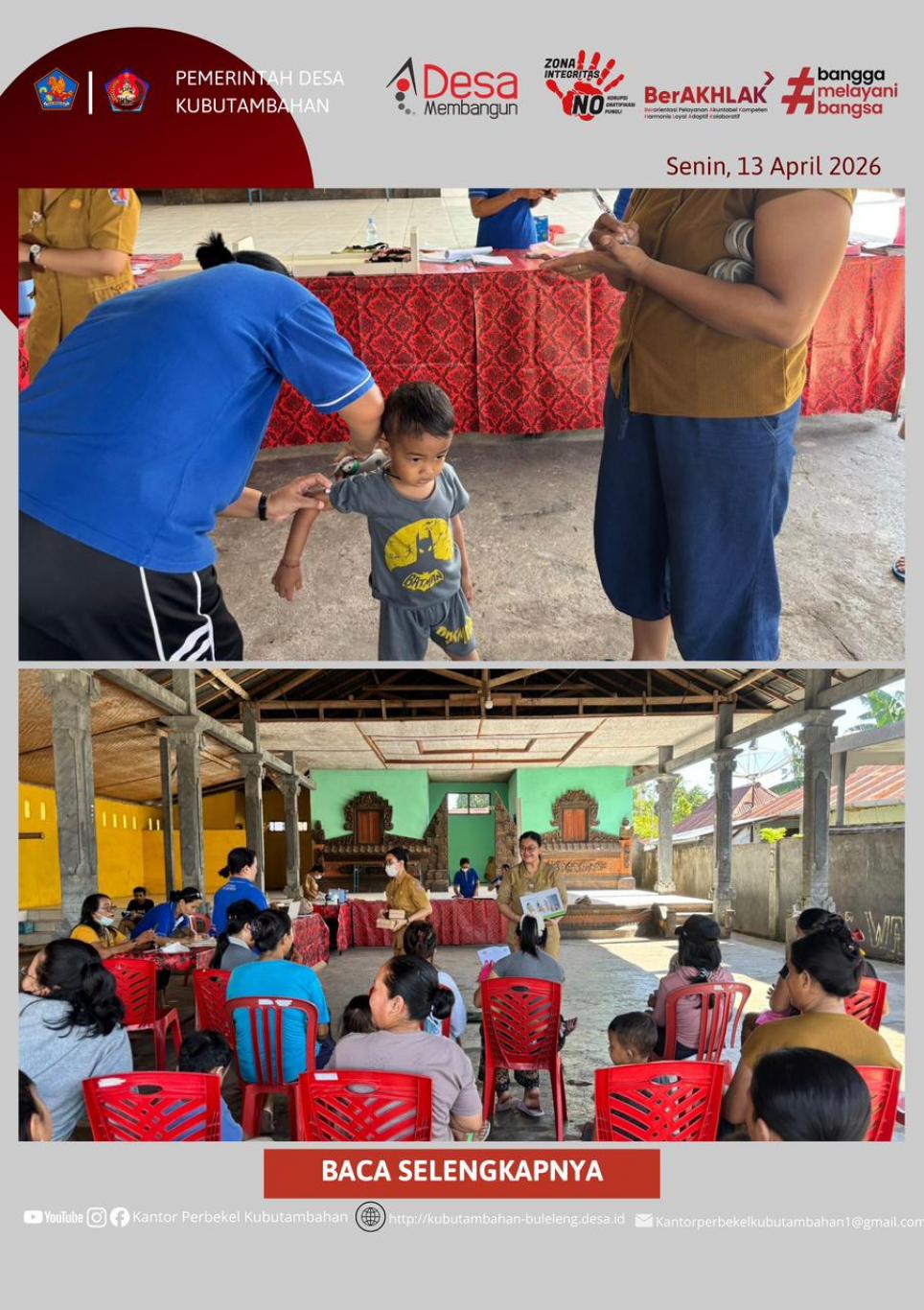 KUBUTAMBAHAN – Kesehatan ibu dan anak kembali menjadi prioritas utama Pemerintah Desa Kubutambahan. Pada hari Senin, 13 April 2026, Kader Posyandu Desa Kubutambahan melaksanakan kegiatan rutin di Posyandu Sekar Jepun, yang berlokasi di wilayah Banjar Dinas Kubuanyar.