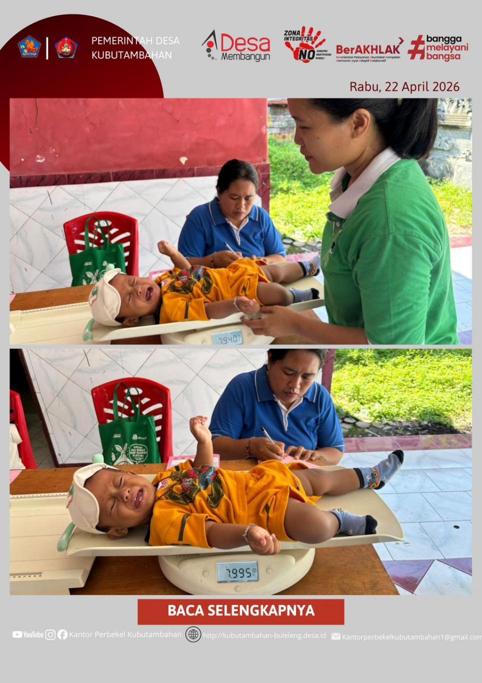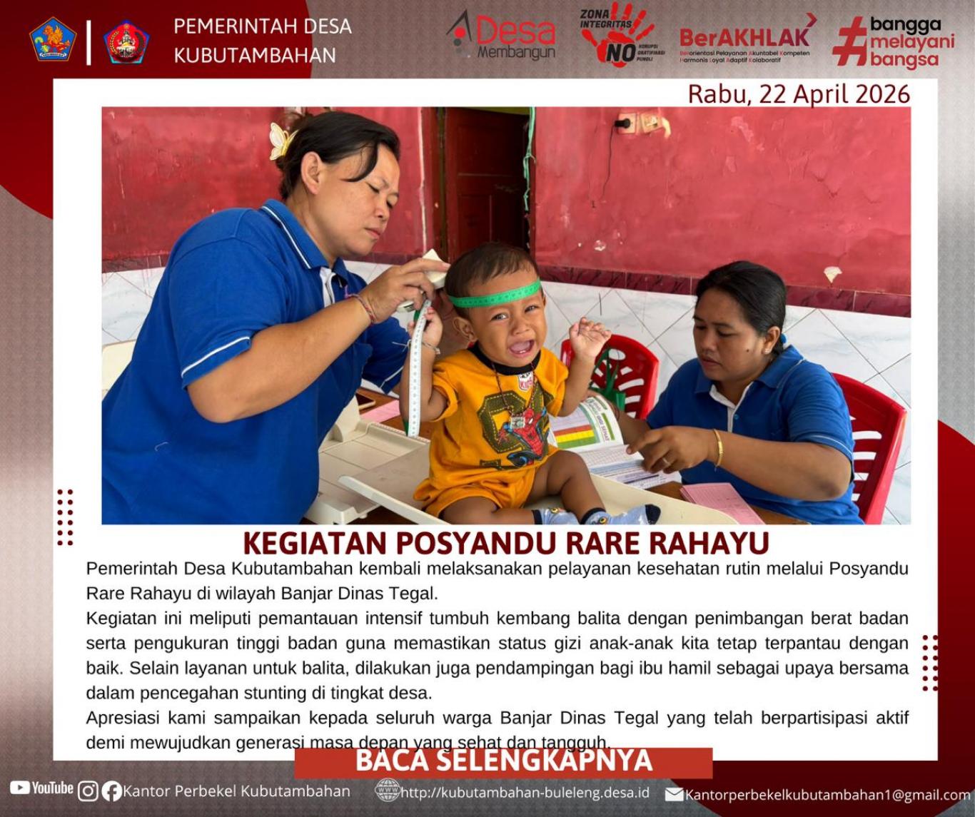 KUBUTAMBAHAN – Kesehatan generasi mendatang menjadi prioritas utama Pemerintah Desa Kubutambahan. Pada Rabu (22/04/2026), pelayanan kesehatan rutin melalui Posyandu Rare Rahayu kembali dilaksanakan dengan menyasar warga di wilayah Banjar Dinas Tegal.