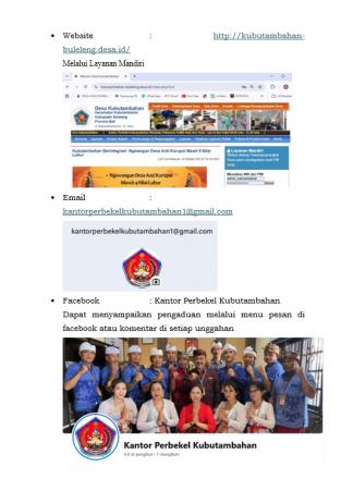 Untuk memenuhi dan melayani permintaan dan kebutuhan pemohon informasi publik, Tim Pengelola Informasi Desa, melalui desa layanan informasi publik melakukan layanan langsung dan layanan melalui media antara lain menggunakan, Website Desa atau Media sosial resmi Pemerintahan Desa Kubutambahan (Pemdes Kubutambahan). Adapun standar pelayanan dan layanan pengaduan terlampir.