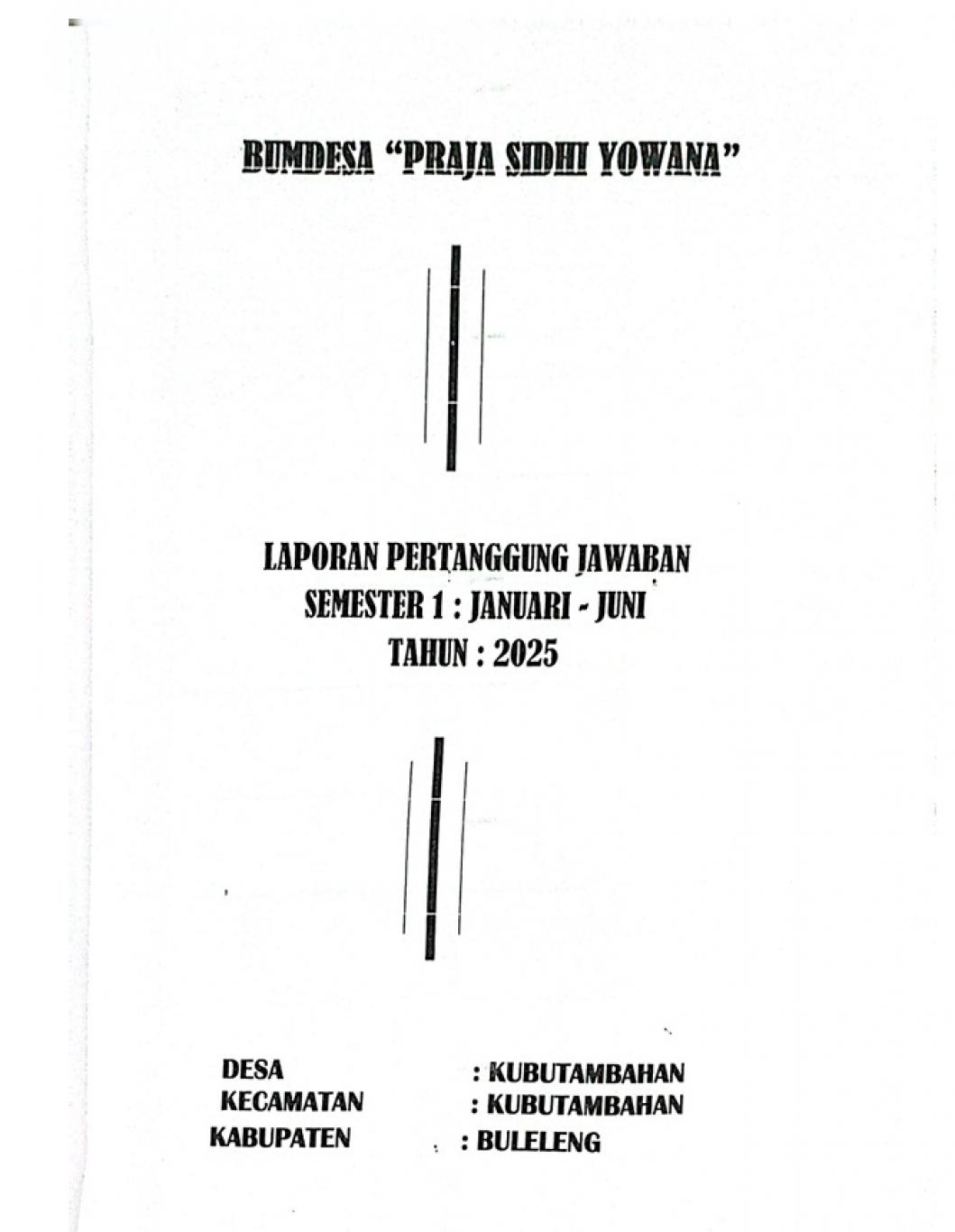 Dokumen Lampiran : LAPORAN PERTANGGUNG JAWABAN BUMDES "PRAJA SIDHI YOWANA" SMT 1 TAHUN 2025