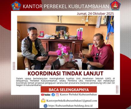 Koordinasi ini merupakan tindak lanjut langsung dari pembinaan UKS yang telah dilaksanakan sebelumnya oleh Pemerintah Desa. Dalam pembinaan tersebut, identifikasi kebutuhan dan kekurangan sarana penunjang kesehatan sekolah menjadi salah satu fokus utama, dan SD N 8 Kubutambahan merespons dengan cepat melalui penyusunan proposal resmi.