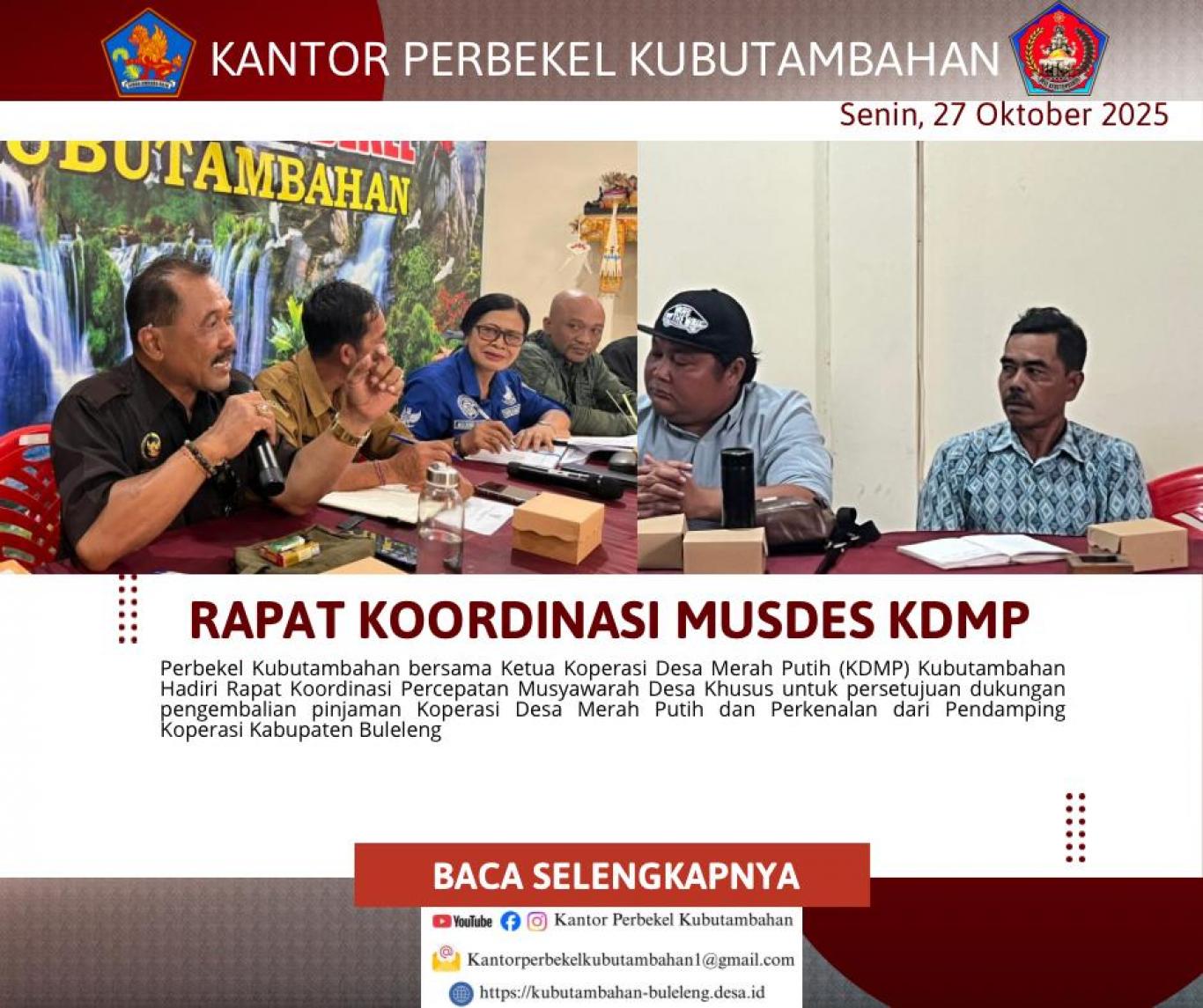 - Sinergi Kecamatan Kubutambahan: Rakor Musdesus KDMP dan Penguatan Kapasitas oleh Pendamping Koperasi