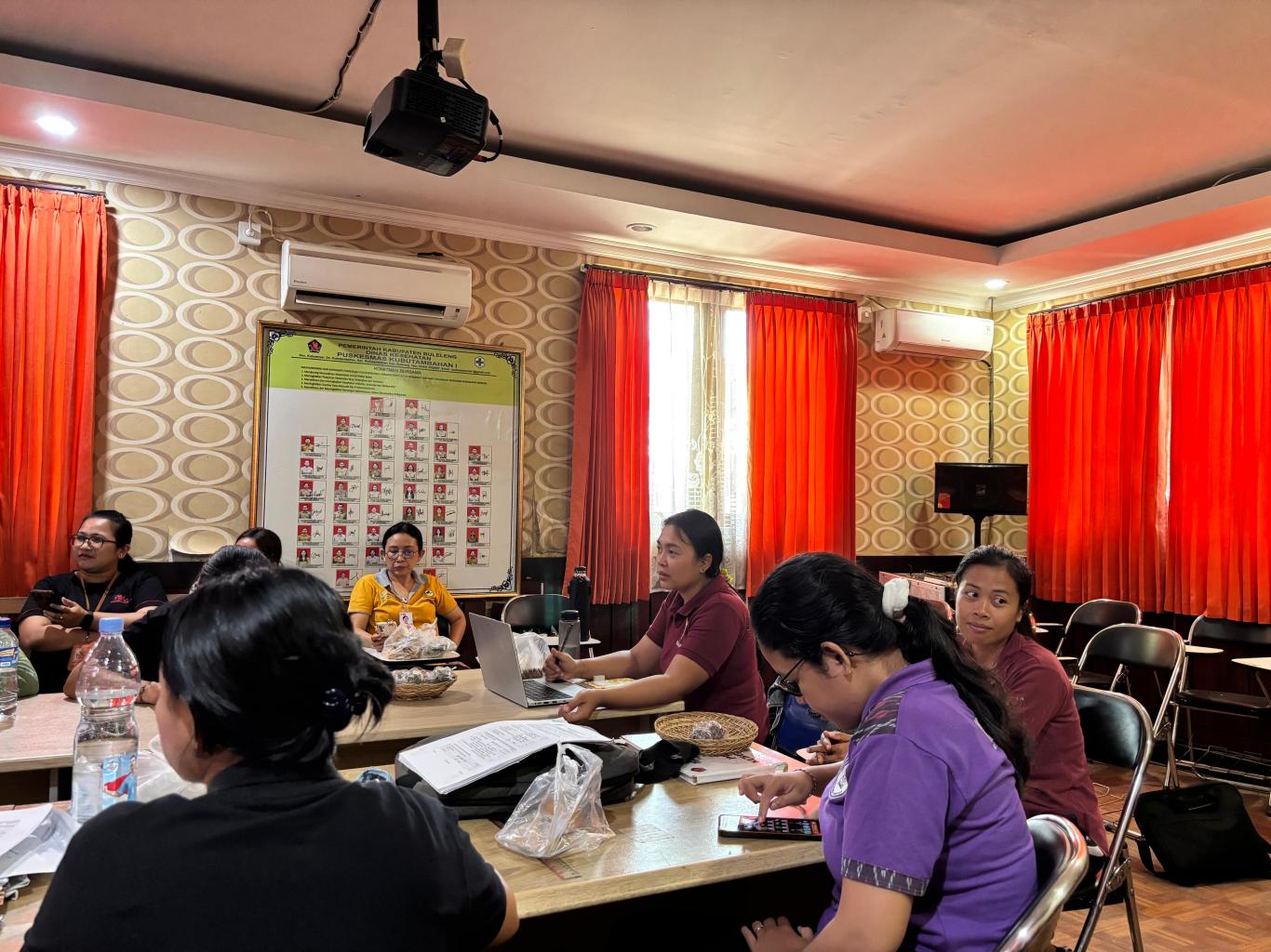 Pertemuan yang dipimpin oleh Kepala Puskesmas, dihadiri oleh seluruh penanggung jawab program KIA, bidan desa, perwakilan kader kesehatan, dan lintas sektor terkait.