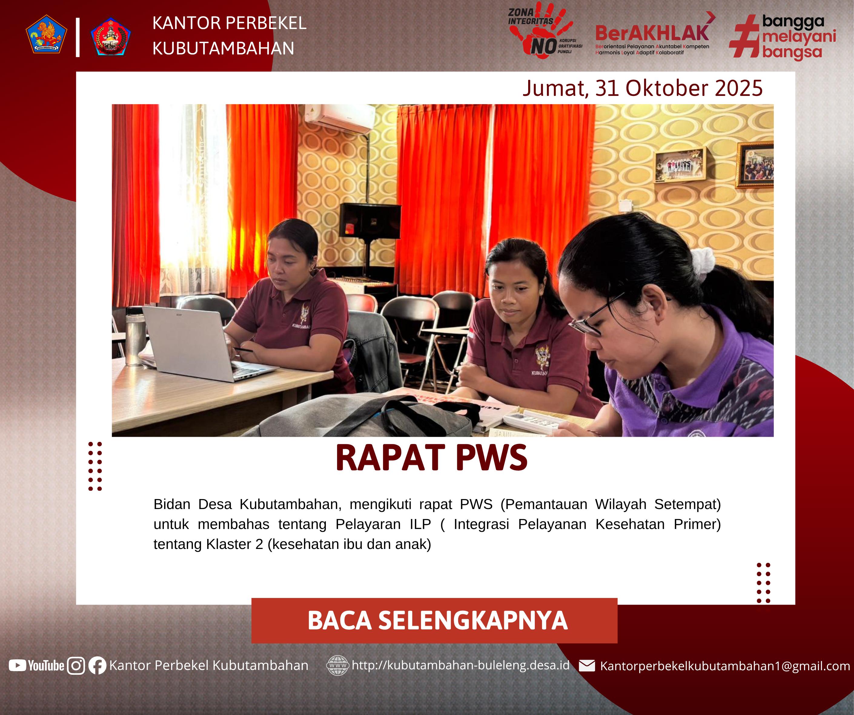 Bidan Desa Kubutambahan Puskesmas Kubutambahan 1 hari ini menyelenggarakan Pertemuan Pemantauan Wilayah Setempat (PWS) yang berfokus pada evaluasi dan peningkatan kualitas Integrasi Pelayanan Kesehatan Primer (ILP), khususnya pada Klaster 2: Kesehatan Ibu dan Anak (KIA). Pertemuan ini menjadi langkah strategis untuk memastikan program kesehatan ibu dan balita berjalan efektif dan mencapai target penurunan stunting di wilayah kerja Puskesmas Kubutambahan 1.
