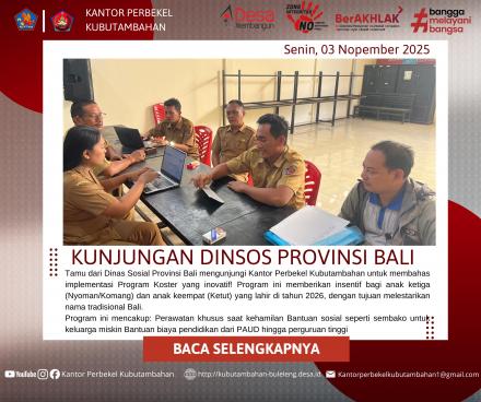 Kubutambahan, 3 November 2025 – Dinas Sosial (Dinsos) Provinsi Bali, pada hari Senin (3/11/2025), melaksanakan kunjungan kerja penting ke Kantor Desa Kubutambahan, Kabupaten Buleleng. Kunjungan ini merupakan bagian dari upaya verifikasi data awal di lapangan untuk persiapan peluncuran program ambisius Pemerintah Provinsi Bali: Insentif bagi Anak Ketiga (Nyoman/Komang) dan Anak Keempat (Ketut) yang lahir mulai tahun 2026.
