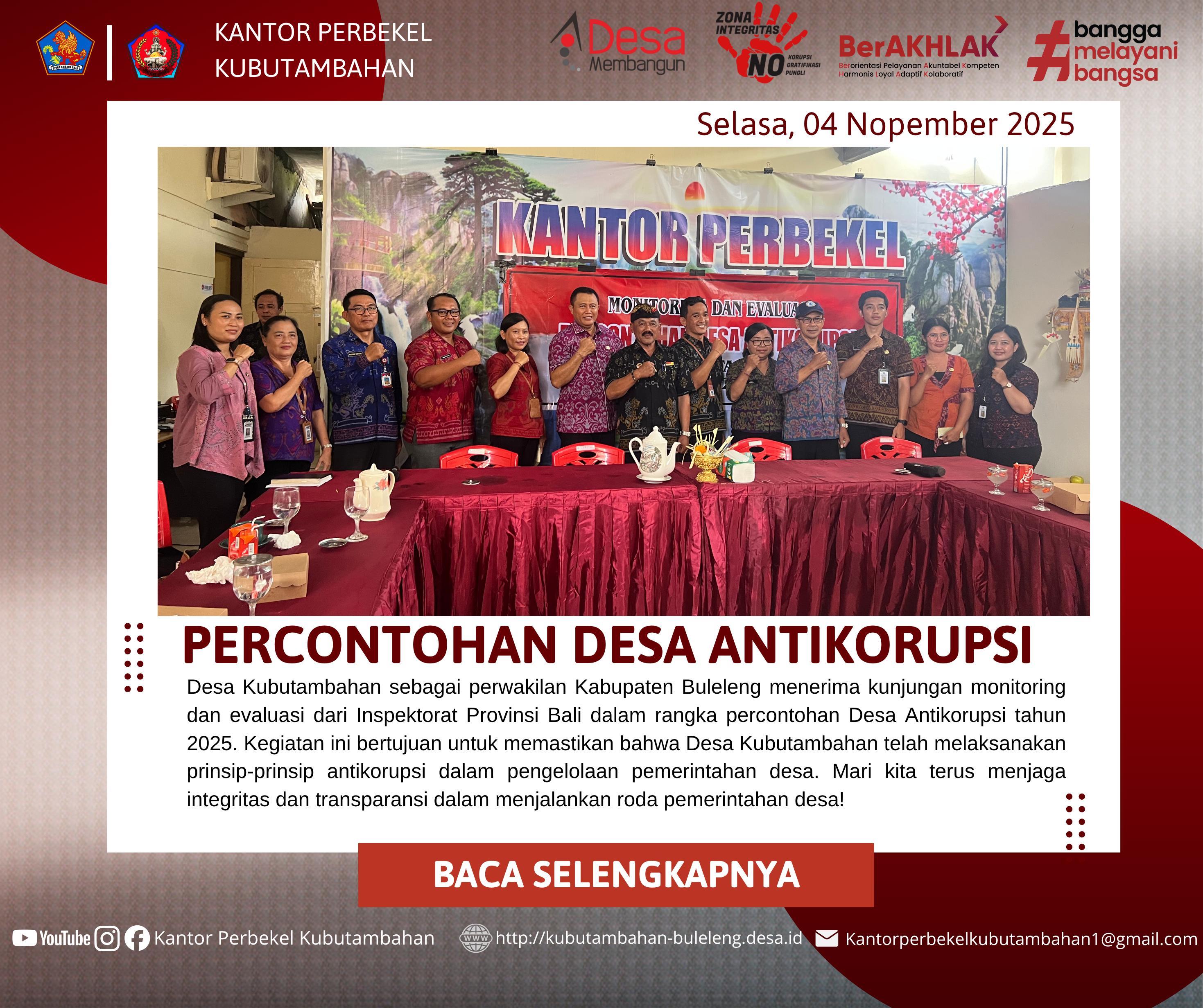 - Kubutambahan Pertahankan Gelar Percontohan Desa Antikorupsi, Raih Nilai Sempurna 100