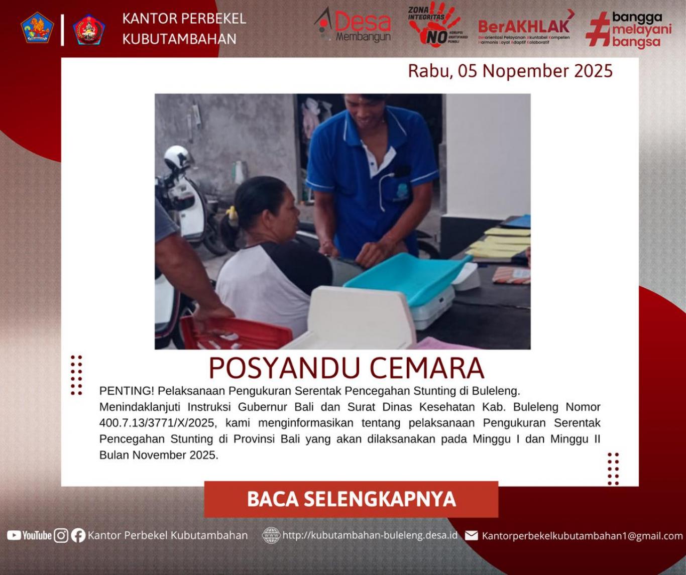 Melalui kegiatan Posyandu Siklus Kehidupan ini, Desa Kubutambahan terus berupaya memastikan bahwa setiap warganya mendapatkan hak dasar kesehatan yang layak dan terjangkau, menegaskan peran Posyandu sebagai pilar utama pembangunan kesehatan di tingkat komunitas.
