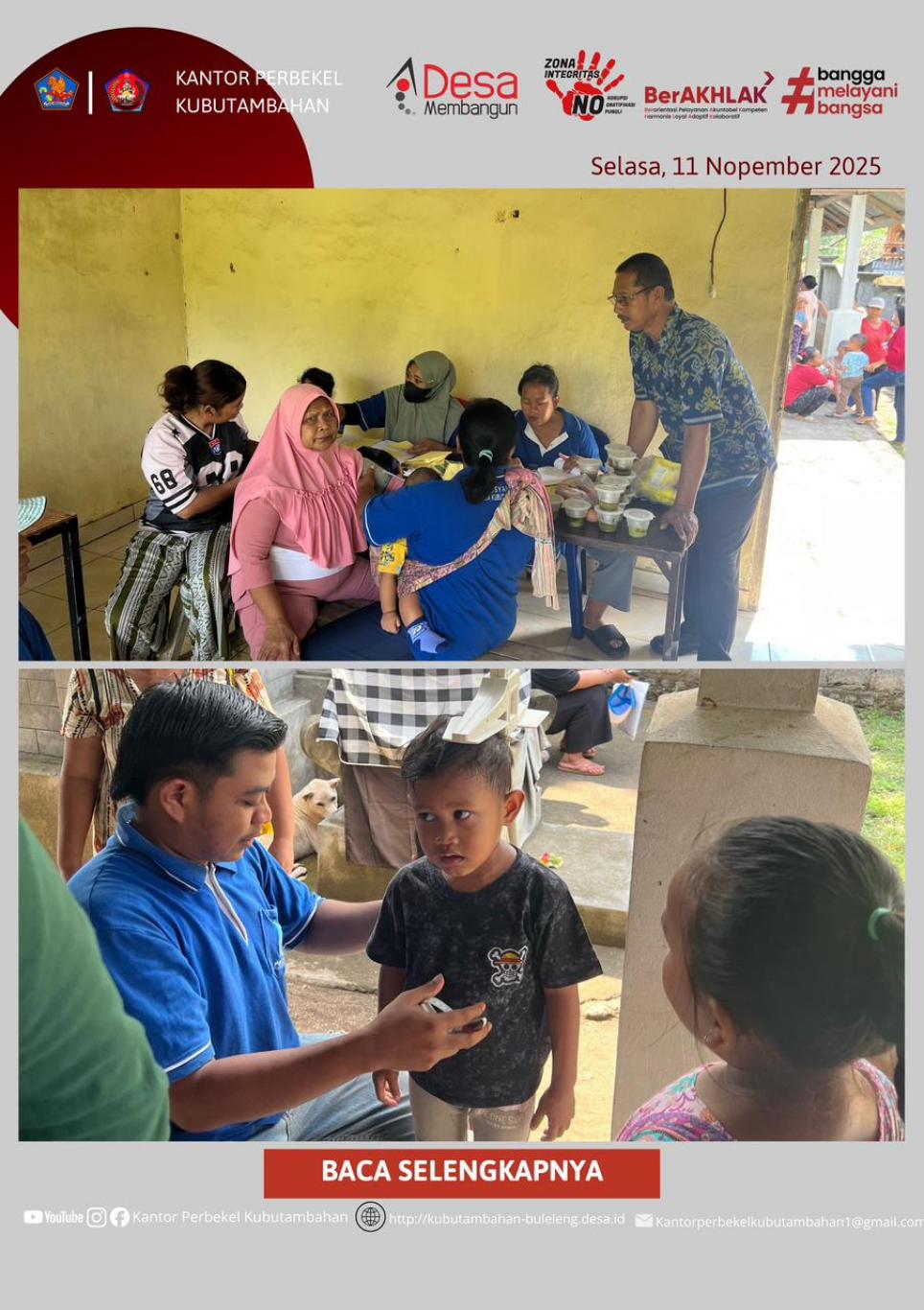 Melalui kegiatan Posyandu Siklus Kehidupan ini, Desa Kubutambahan terus berupaya memastikan bahwa setiap warganya mendapatkan hak dasar kesehatan yang layak dan terjangkau, menegaskan peran Posyandu sebagai pilar utama pembangunan kesehatan di tingkat komunitas.