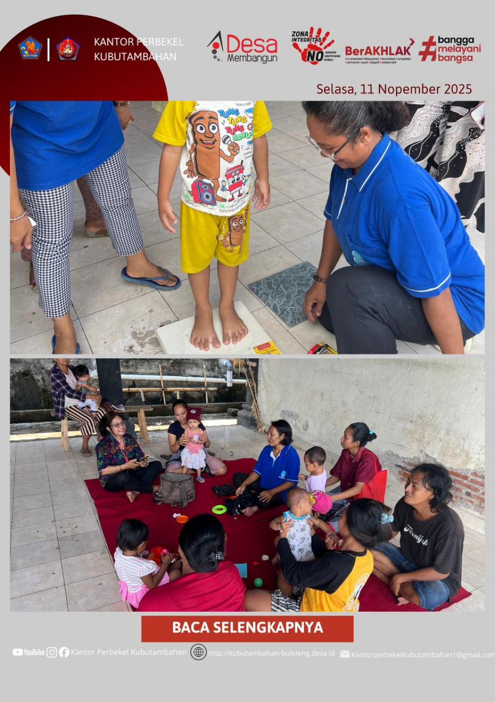 Melalui kegiatan Posyandu Siklus Kehidupan ini, Desa Kubutambahan terus berupaya memastikan bahwa setiap warganya mendapatkan hak dasar kesehatan yang layak dan terjangkau, menegaskan peran Posyandu sebagai pilar utama pembangunan kesehatan di tingkat komunitas.