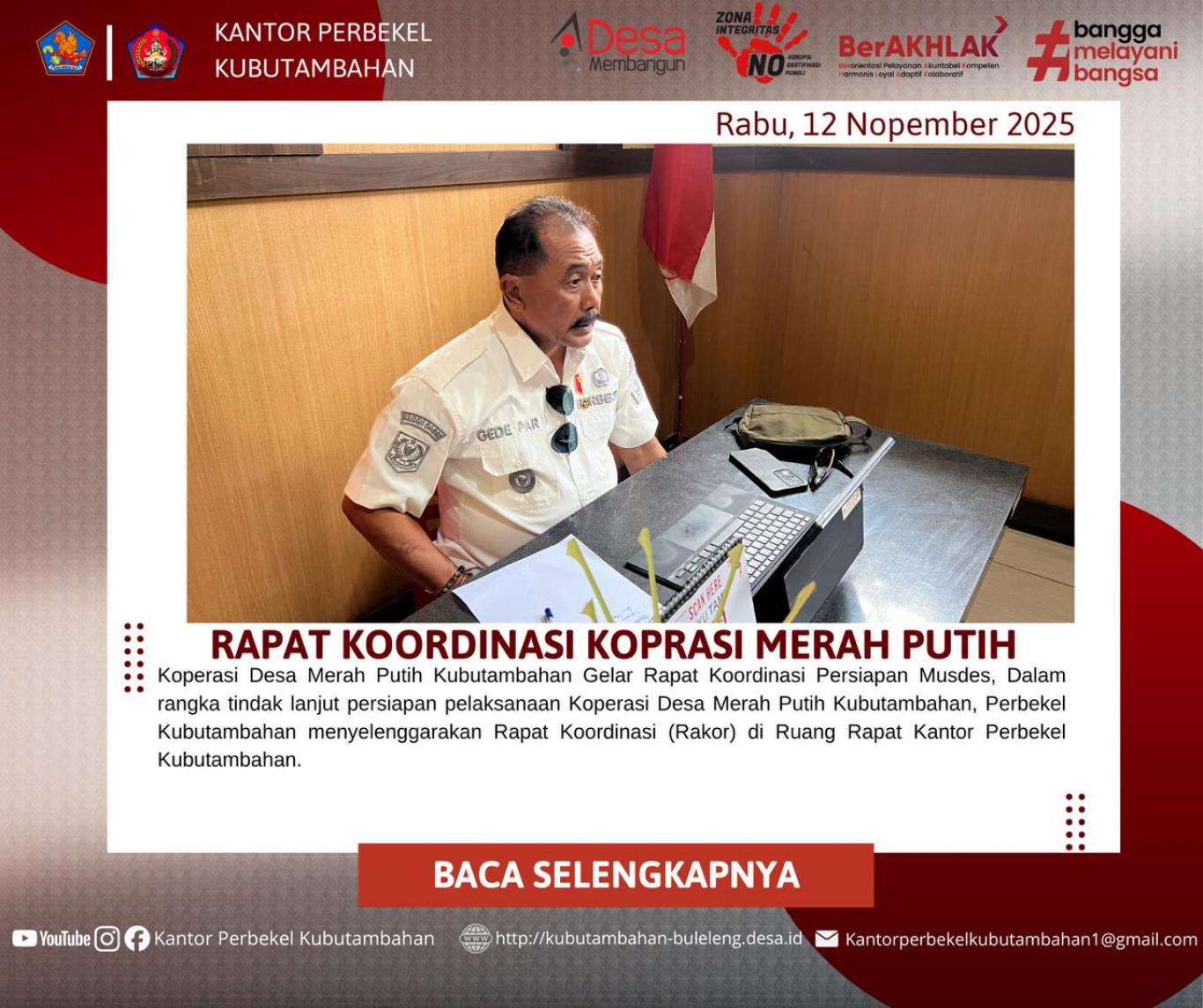 Kubutambahan, 12 November 2025 – Dalam rangka percepatan tindak lanjut dan persiapan pelaksanaan Koperasi Desa (Kopdes) Merah Putih, bertempat di Ruang Rapat Kantor Desa Kubutambahan, telah dilangsungkan Rapat Koordinasi (Rakor) yang krusial.