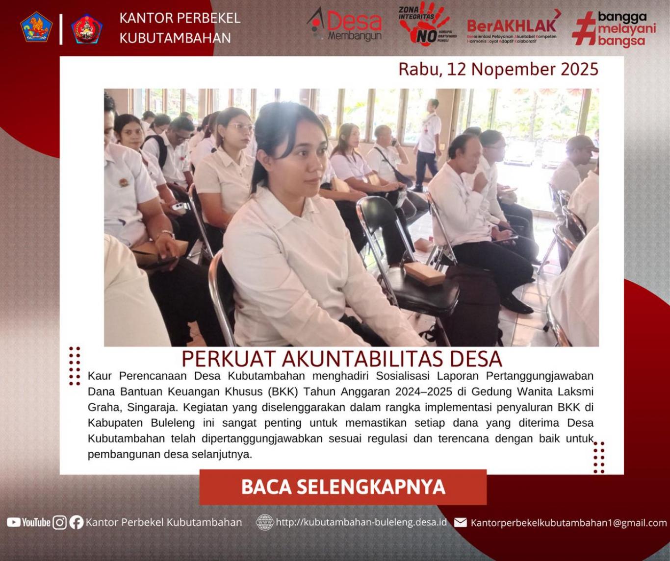 Kegiatan sosialisasi ini dihadiri oleh perwakilan pemerintah desa se-Kabupaten Buleleng. Salah satunya adalah Desa Kubutambahan yang menugaskan Kaur Perencanaan, sebagaimana tercantum dalam Surat Tugas Nomor 800.1.11.1/061/XI/KBT/2025. Kehadiran Kaur Perencanaan sangat strategis mengingat posisi ini berperan penting dalam penyusunan dan pengawasan program pembangunan desa.