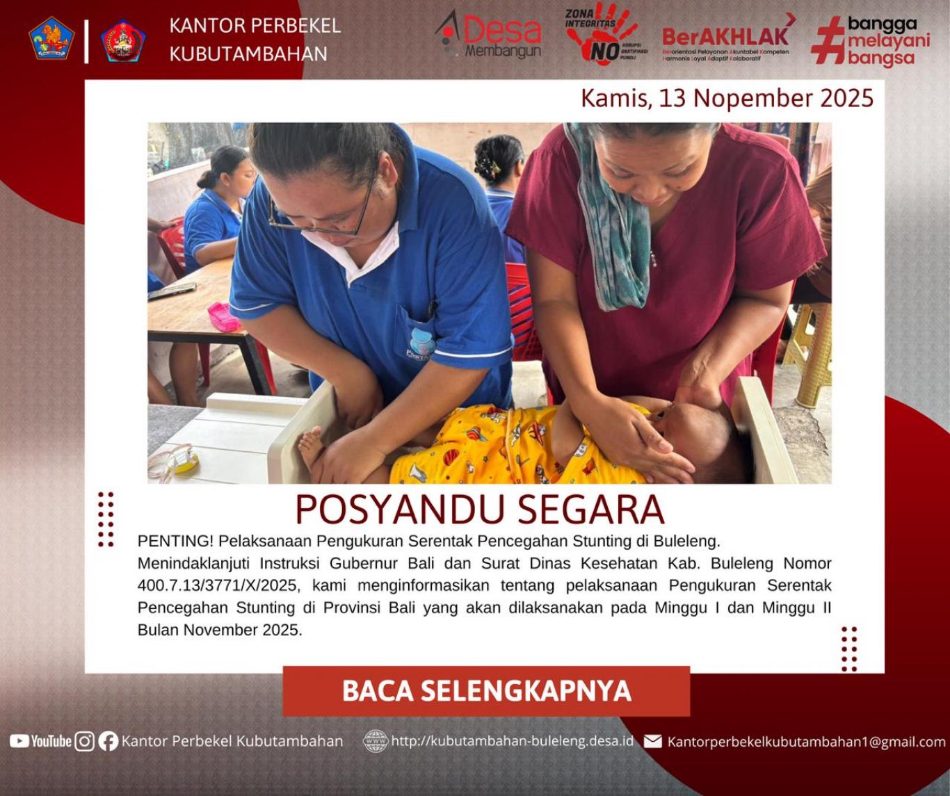 Melalui kegiatan Posyandu Siklus Kehidupan ini, Desa Kubutambahan terus berupaya memastikan bahwa setiap warganya mendapatkan hak dasar kesehatan yang layak dan terjangkau, menegaskan peran Posyandu sebagai pilar utama pembangunan kesehatan di tingkat komunitas.