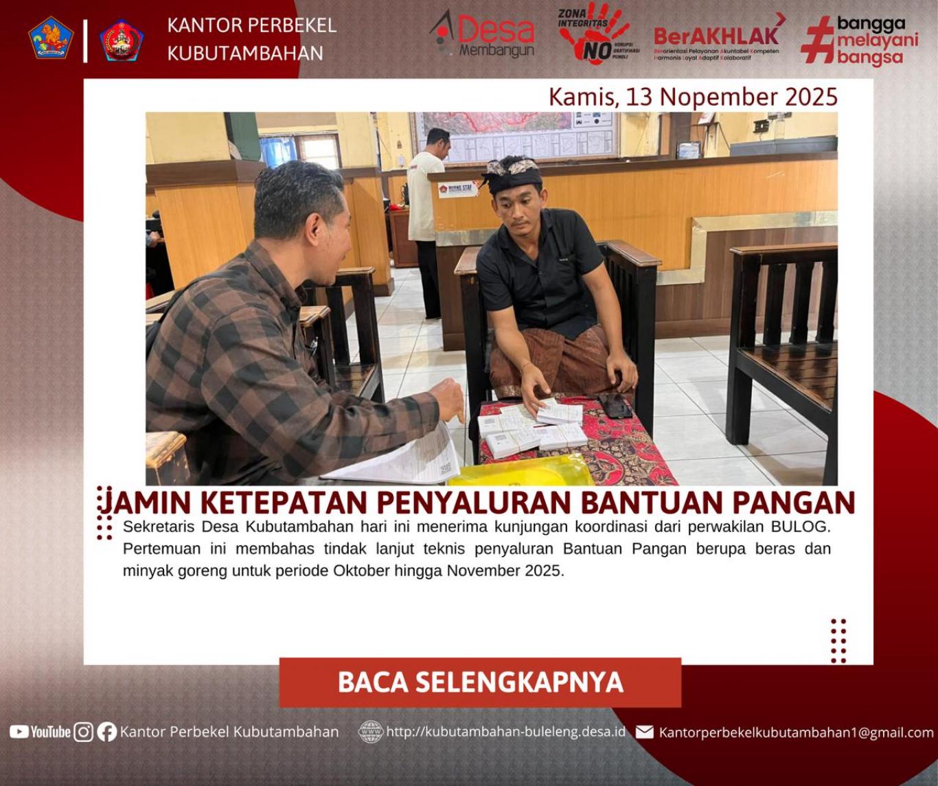 Kubutambahan, 13 November 2025 – Pemerintah Desa Kubutambahan kembali menunjukkan keseriusannya dalam memastikan program bantuan sosial dari pemerintah pusat tersalurkan dengan baik. Hari ini, Kamis, 13 November 2025, Sekretaris Desa (Sekdes) Kubutambahan menerima kunjungan koordinasi penting dari perwakilan Badan Urusan Logistik (BULOG).