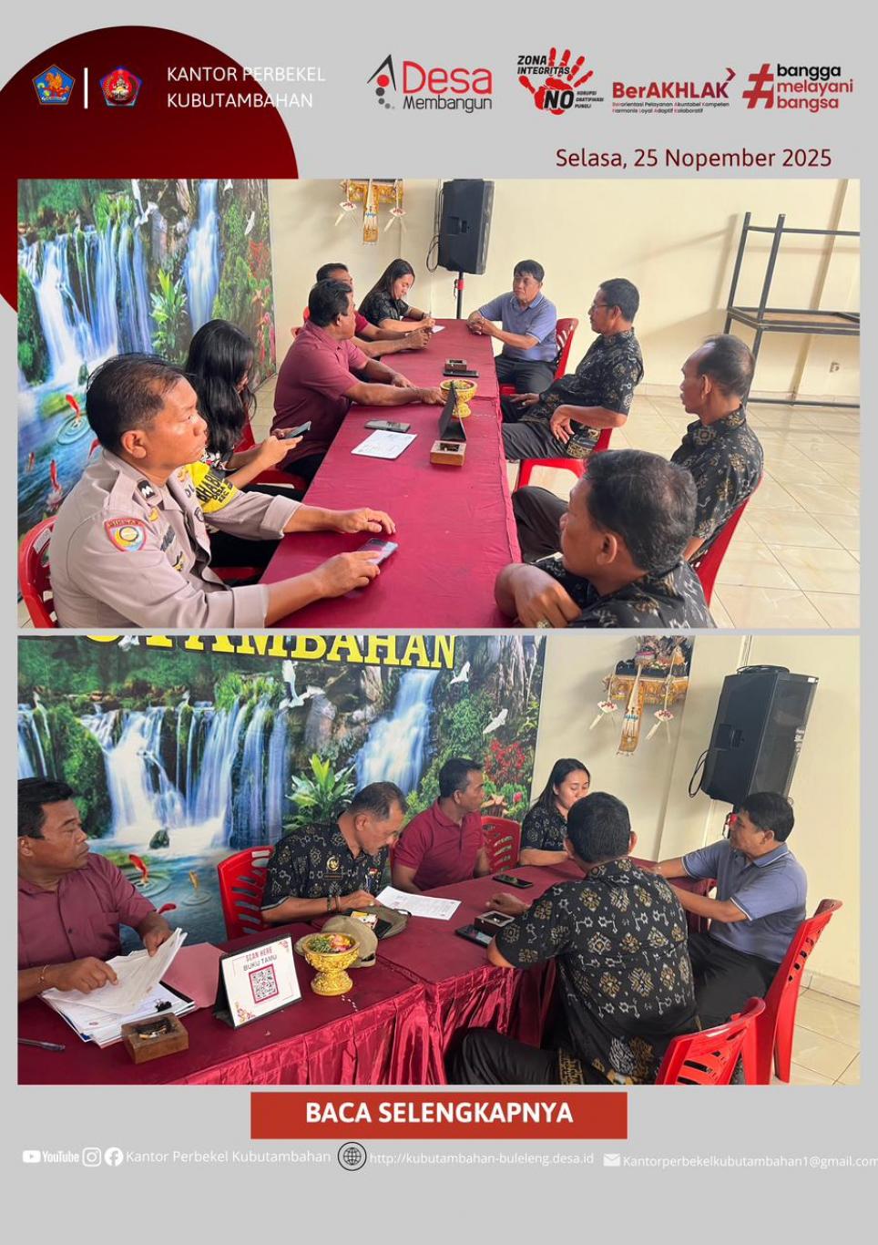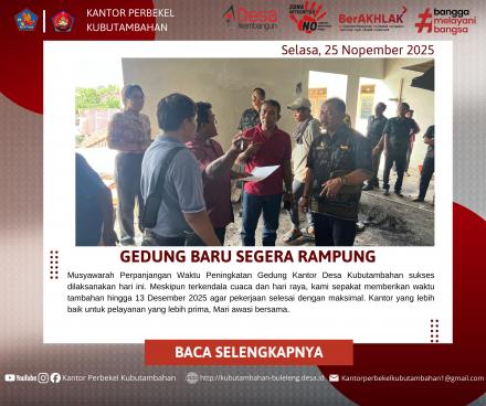 KUBUTAMBAHAN, 25 November 2025 – Musyawarah Perpanjangan Waktu Rehabilitasi/Peningkatan Gedung Kantor Perbekel dan Sarana Prasarana Kantor Desa Kubutambahan telah dilaksanakan pada hari ini, Selasa, 25 November 2025. Musyawarah ini diadakan di Aula Kantor Perbekel Kubutambahan untuk membahas keterlambatan penyelesaian pekerjaan.