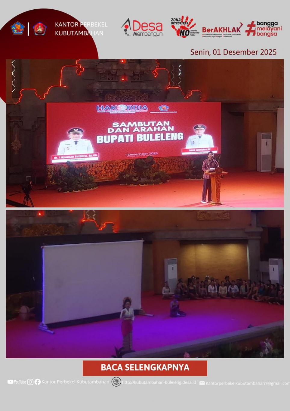 Singaraja, [1 Desember 2025] – Komitmen Pemerintah Desa Kubutambahan untuk mewujudkan tata kelola yang bersih dan akuntabel semakin diperkuat. Sekretaris Desa (Sekdes) Kubutambahan, menghadiri kegiatan strategis Sosialisasi Anti Korupsi bagi Perbekel, Lurah, dan Kelian Desa Adat Se-Kabupaten Buleleng yang diselenggarakan di Gedung Kesenian "Gde Manik" Singaraja