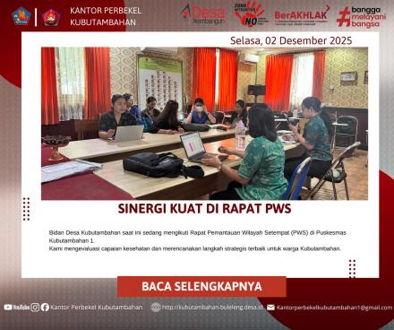 Kubutambahan, 2 Desember 2025 – Bidan Desa (Bindes) Kubutambahan, turut berpartisipasi aktif dalam Rapat Pemantauan Wilayah Setempat (PWS) program Kesehatan Ibu dan Anak (KIA) yang diselenggarakan oleh Puskesmas Kubutambahan I. Rapat strategis ini diadakan selama dua hari, yaitu pada tanggal 1 dan 2 Desember 2025, dengan fokus utama pada evaluasi capaian kesehatan di wilayah kerja Puskesmas.