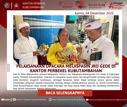 "Palinggih Jro Gede ini adalah simbol spiritual yang mengingatkan kita untuk selalu menjaga moralitas dan integritas dalam pengabdian. Semoga dengan pelaksanaan upacara ini, Kantor Perbekel Kubutambahan menjadi pusat pemerintahan yang tenteram, ajeg, dan selalu mendatangkan kesejahteraan bagi seluruh warga desa," tegas Perbekel.