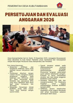 Musyawarah Desa ini menegaskan prinsip akuntabilitas dan transparansi dalam pengelolaan anggaran Desa Kubutambahan demi kesejahteraan masyarakat.