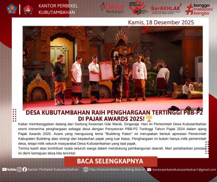 - Desa Kubutambahan Raih Penghargaan Tertinggi Penyetoran PBB-P2 di Ajang Pajak Awards 2025