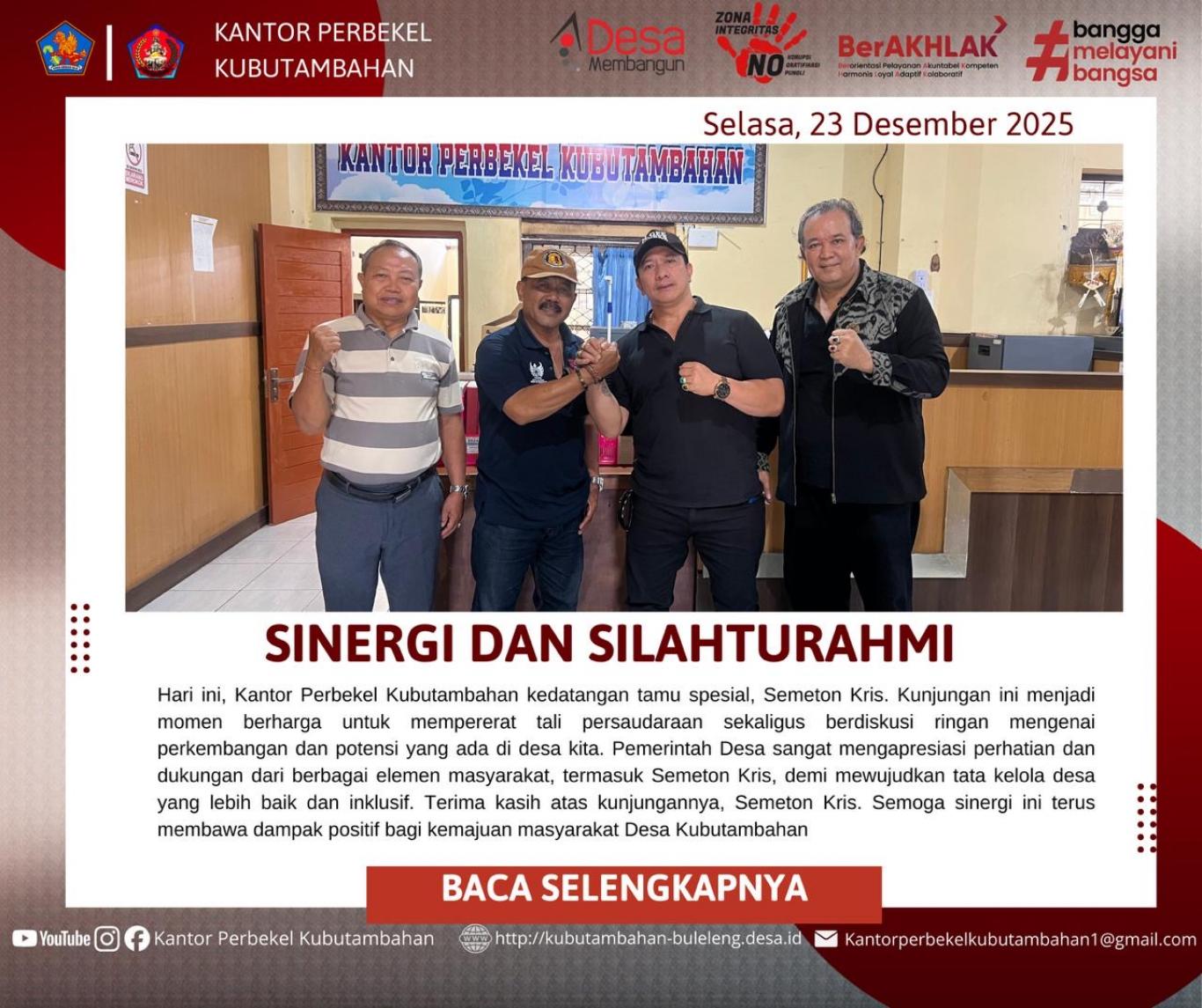 KUBUTAMBAHAN – Hari ini, Selasa (23/12/2025), Desa Kubutambahan kedatangan tamu spesial dalam rangka mempererat tali silaturahmi sekaligus menjajaki kerja sama strategis. Perwakilan dari Semeton Kris Buleleng secara resmi berkunjung ke Desa Kubutambahan untuk melihat langsung berbagai potensi yang dimiliki desa.