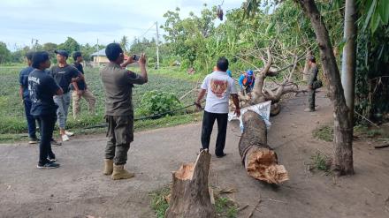 Pohon berukuran besar tersebut tumbang dan sempat melintang di tengah jalan, yang juga mengenai kabel jaringan listrik di area Jalan Sawah. Mengingat jalur tersebut merupakan akses penting bagi warga menuju pesisir Pantai Ponjok, penanganan segera dilakukan untuk menghindari kemacetan dan bahaya kelistrikan.