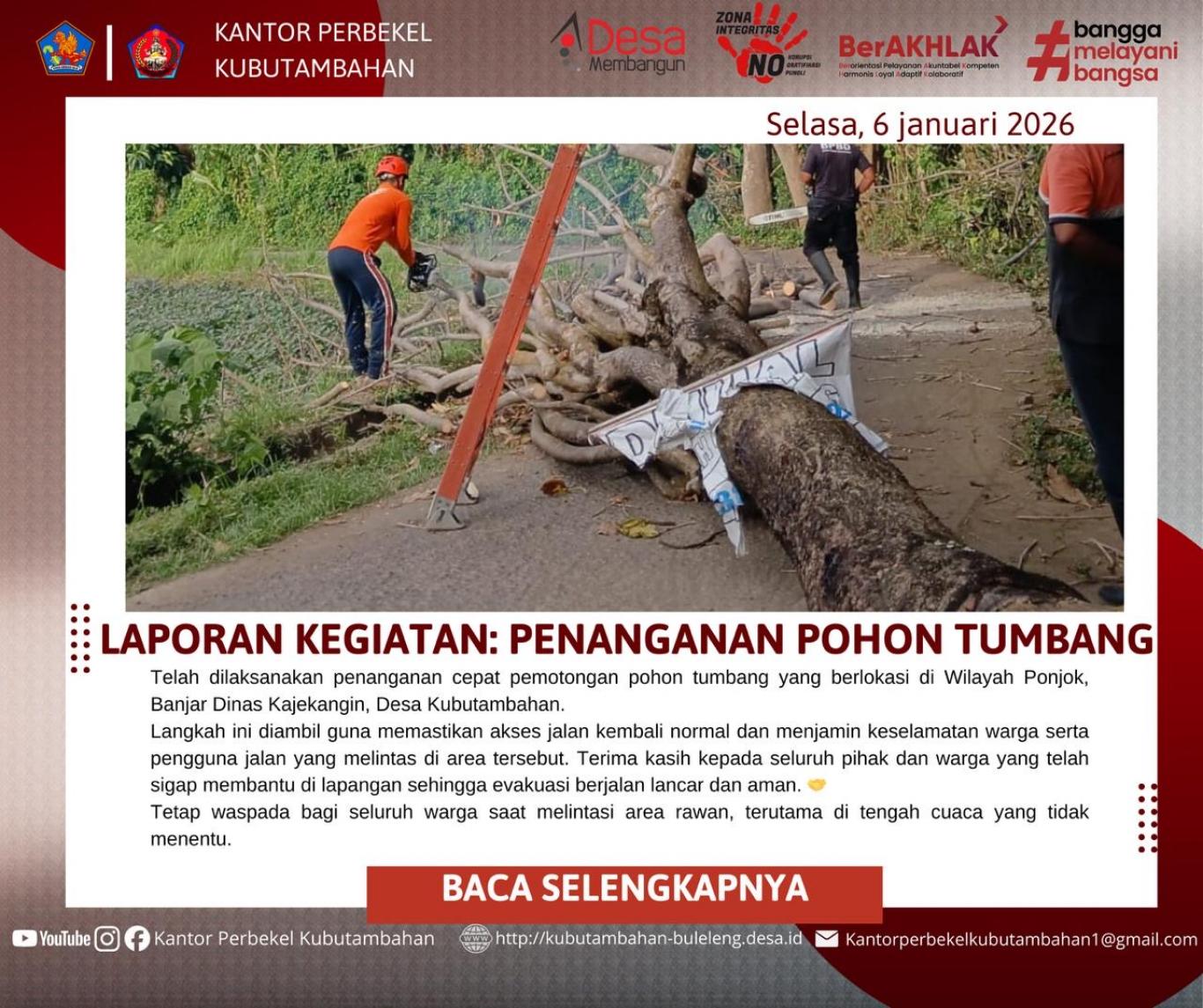 Pemerintah Desa Kubutambahan mengapresiasi kesigapan BPBD dan PLN serta partisipasi aktif warga Banjar Dinas Kaja Kangin. Masyarakat diimbau untuk tetap waspada terhadap potensi pohon tumbang, terutama saat cuaca ekstrem, dan segera melaporkan jika melihat adanya pohon yang rawan roboh atau bersentuhan dengan kabel listrik.